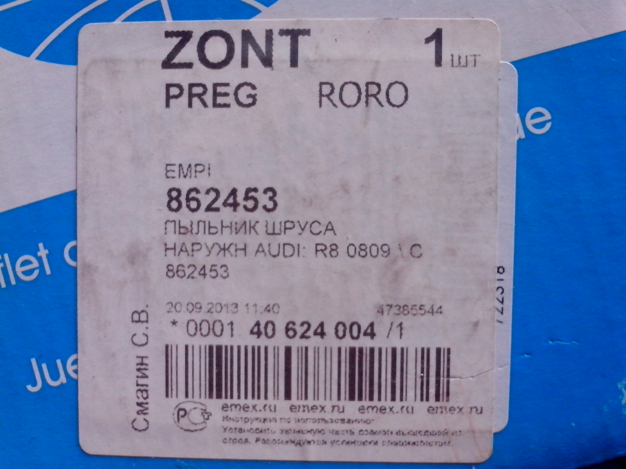 Господа!Решил-таки проблему с пыльником на кардан к раздатке!Пробовал и от Нивы и от Оки И от 8-ки-всё НЕ ТО ! Подошёл пыльник отАУДИ-езжу с октября,регулярно осматриваю-всё хорошо.Вот что написано:862453 Пыльник Шруса наружн.АУДИ,:R80809.На другой стороне коробки:C.V.Boot Kit Juego de Bota Soufflet 86-2453-D.