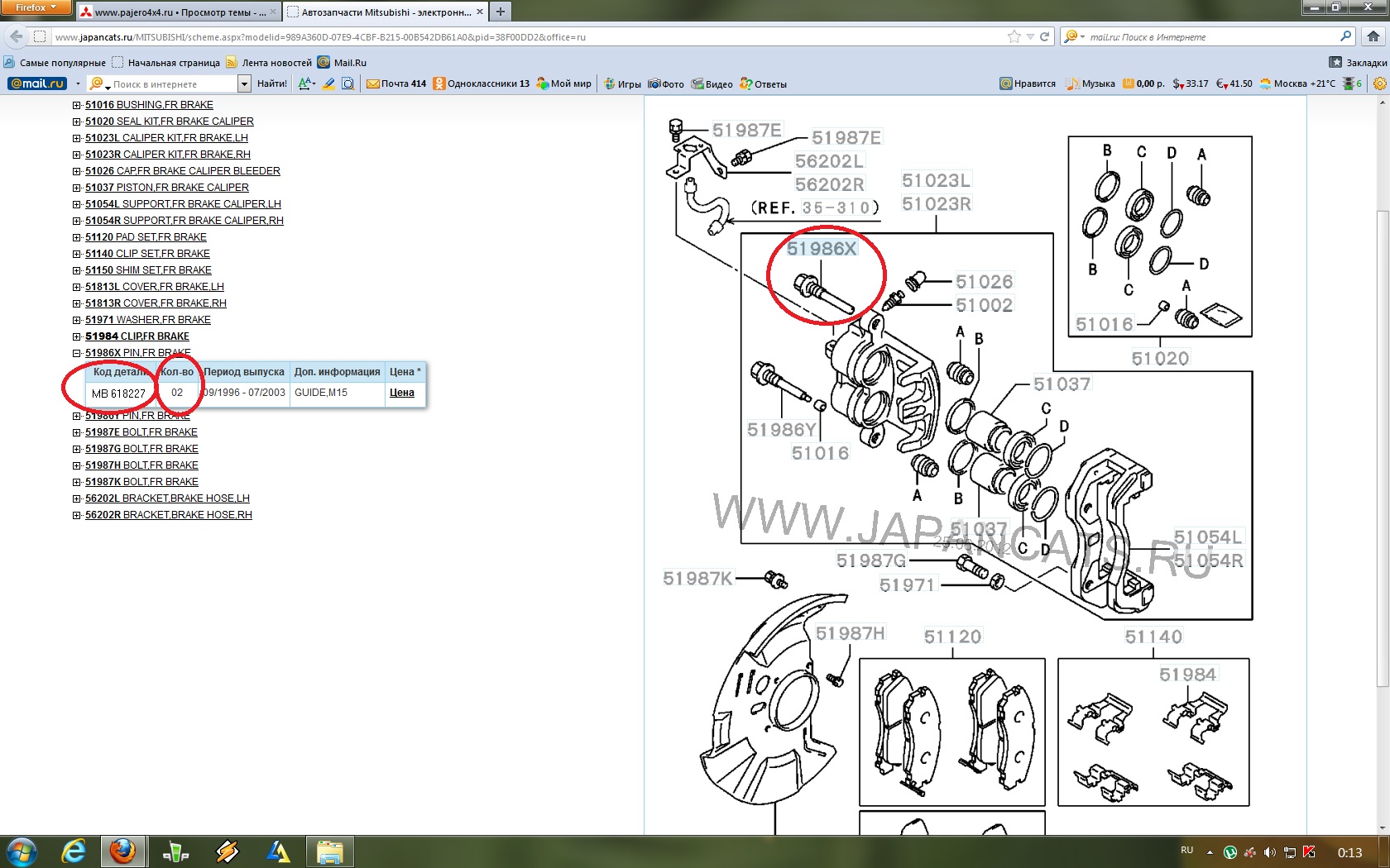 Всем здрасьте, хочу поменять направляшки, скобы, которые держат колодки, и поставить накладки на колодки которых у меня небыло, а то браканье достало на гравийке, подскажите правильно я номера запчестей подобрал или нет, а то в другой теме спрашивал ни кто не ответил, vin не пробивается мой, пришлось искать по другому.