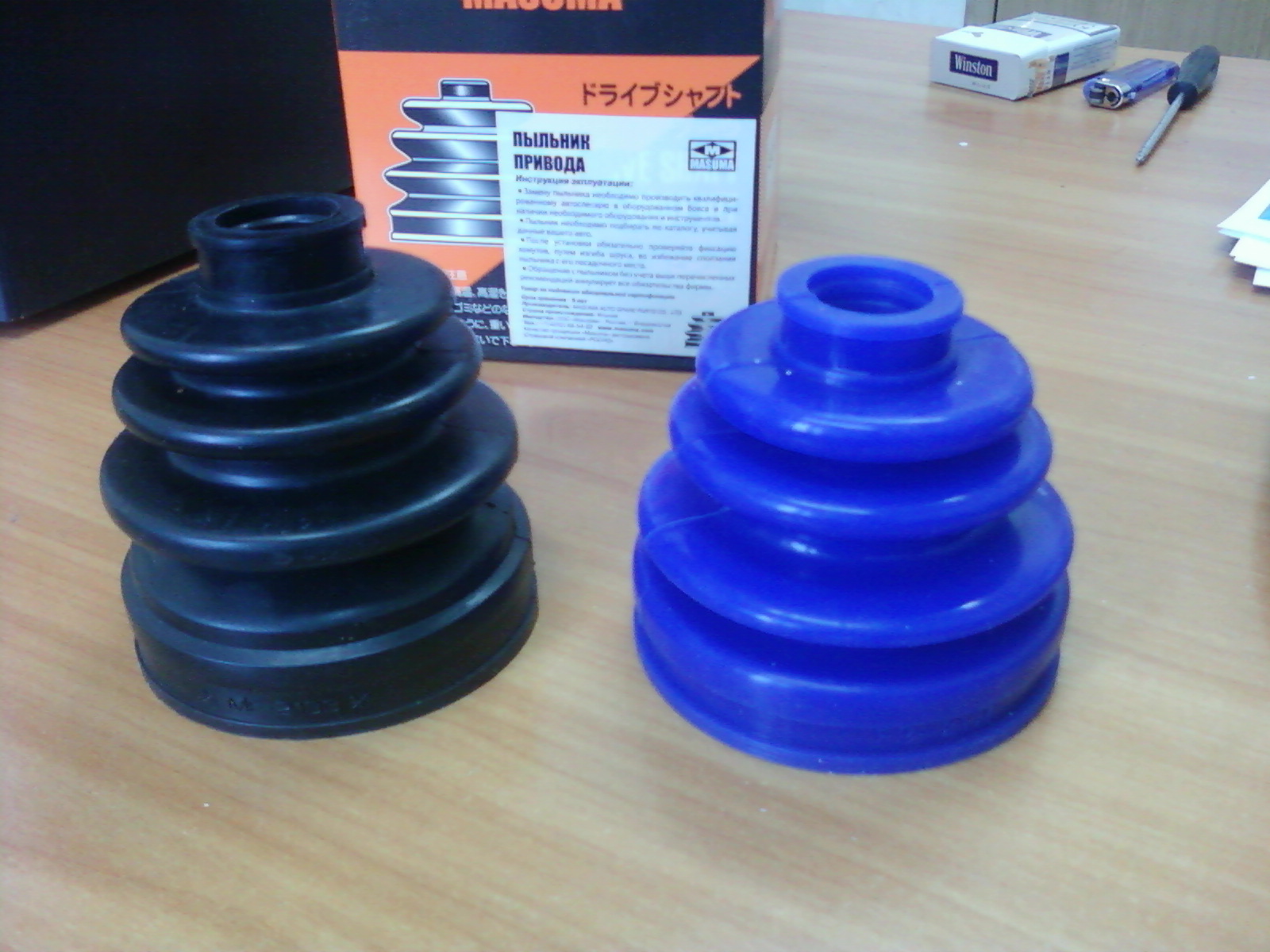 Синий - купил на китайском рынке, чёрный в автомагазине...Был-бы у кетайцэв такой-же как и чёрный но синий (из силикона) купил-бы его, т.к. на морозе он не потерял своей эластичности, а чёрный, думаю, лопнет нах в мороз.