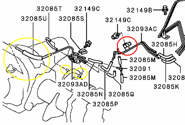 Потом, уже в яме, снимаем все трубки и шланчики от подключайки, так-же не забываем снять шланчик сапуна с "ореха", отключаем разъём датчика подключайки, и вытаскиваем его из держателя (удобно это делать из под капота)