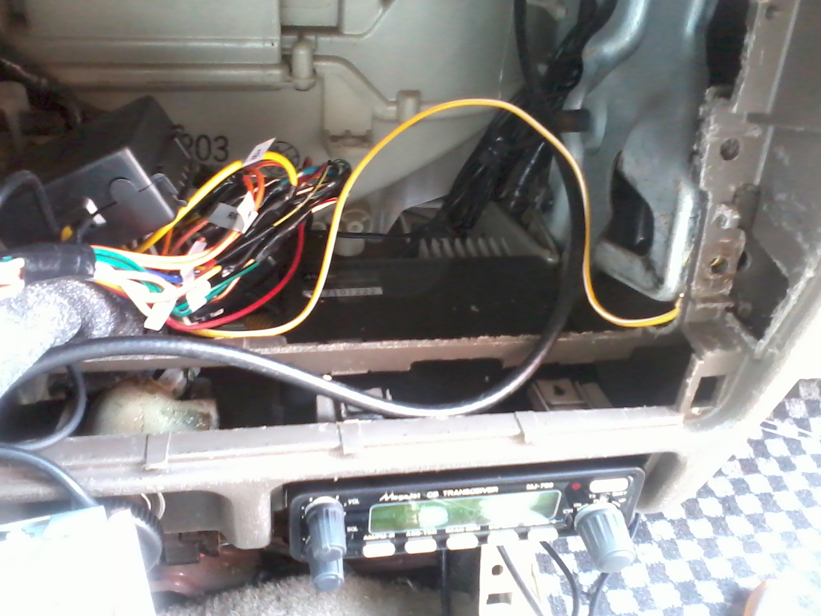 Я вставил в вехнюю консоль, вместо одного из ящиков. Сделал из фанеры каркас, обклеил его эпоксидкой со стеклотканью, затем наклеил карпет. Рация входит внатяг, держится крепко, дополнительно прижимается шурупом крепления защёлки тангеты.