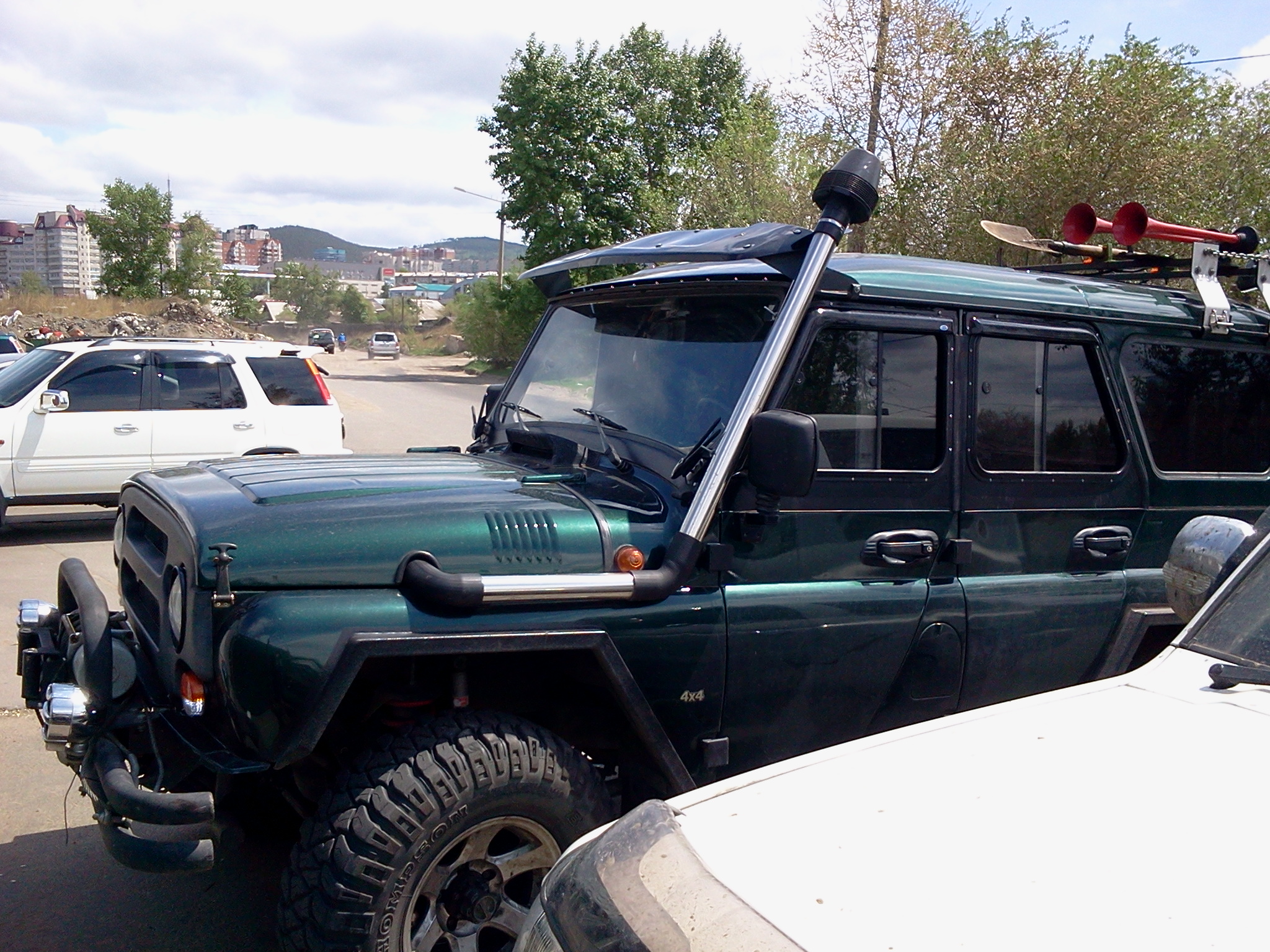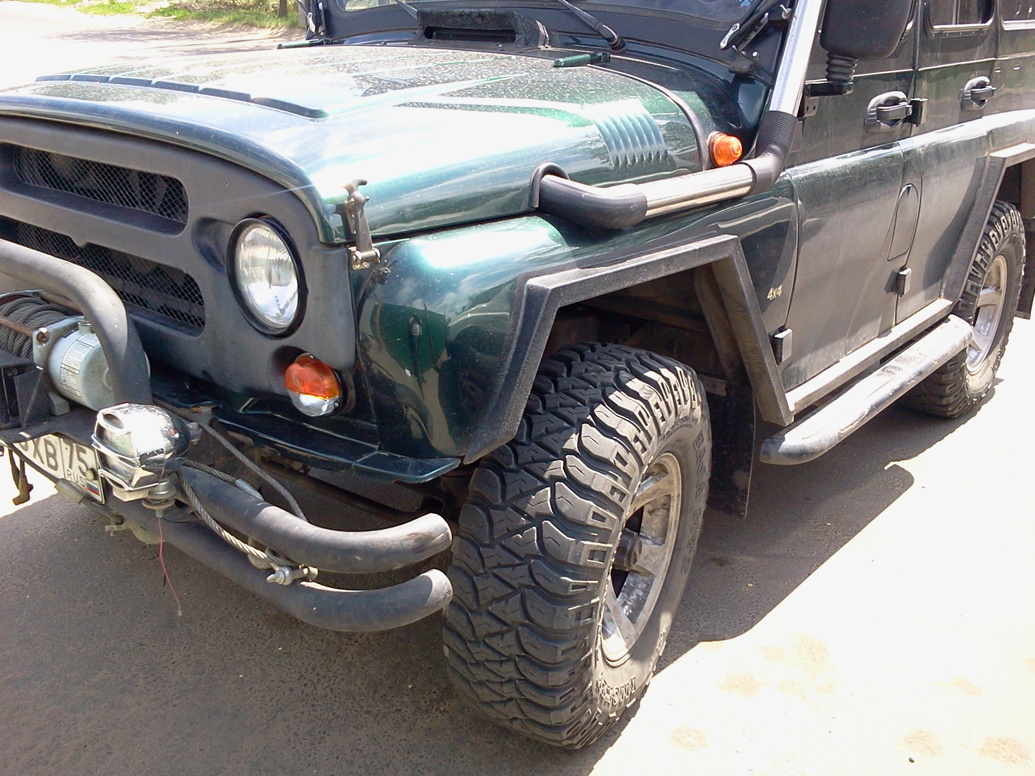 91 г.в., 3дв., арки подстрижены,нелинейка 60-0, 285/75/16"М/T, гена 110А под капотом+OPTIMA YT, танковый ближний ксенон, Recaro, демпфер Nissan и ещё амортизаторы от разных машин - был...
