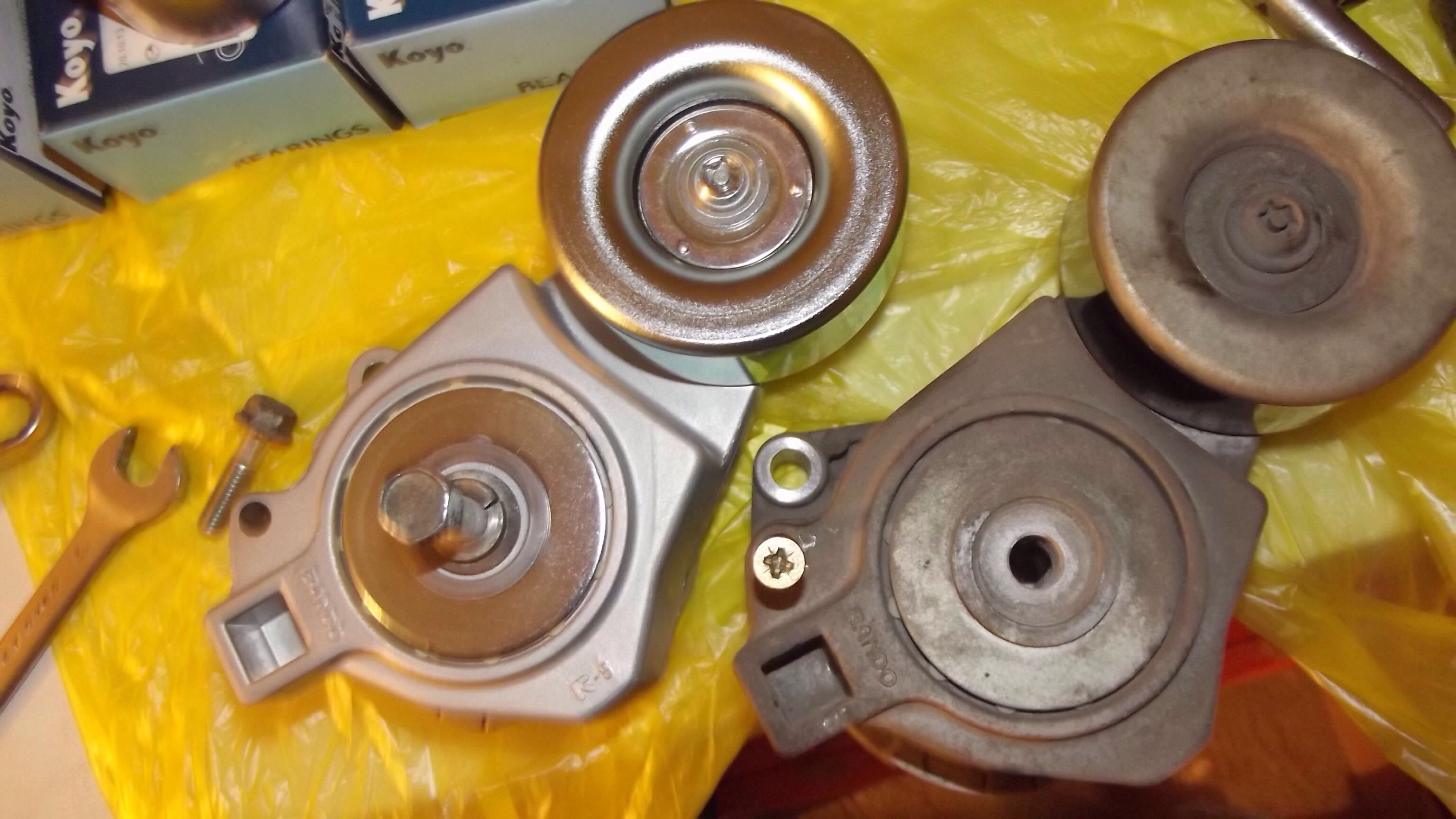 Зы. Убедиться что по утрам шумит навесное или ролики лучше сняв ремень агрегатов,это не сложно,нужно стандартным воротком от набора головок ослабить натяжитель и зафиксировать его подходящим болтиком или сверлом,вставив в отверстие ( на фото справа зафиксированный).