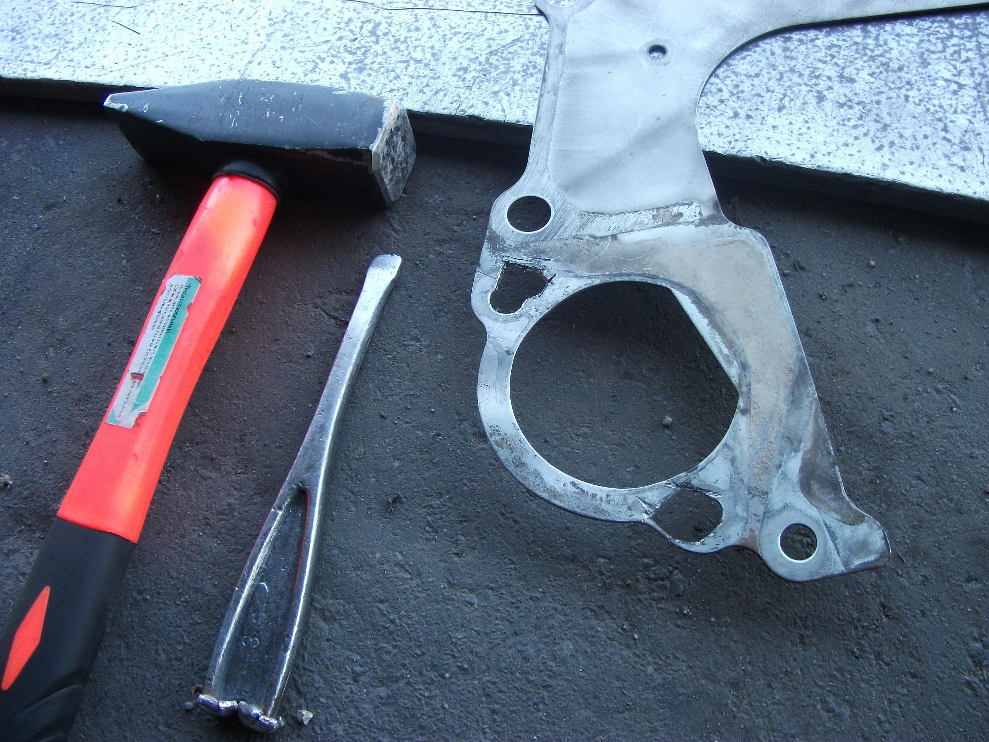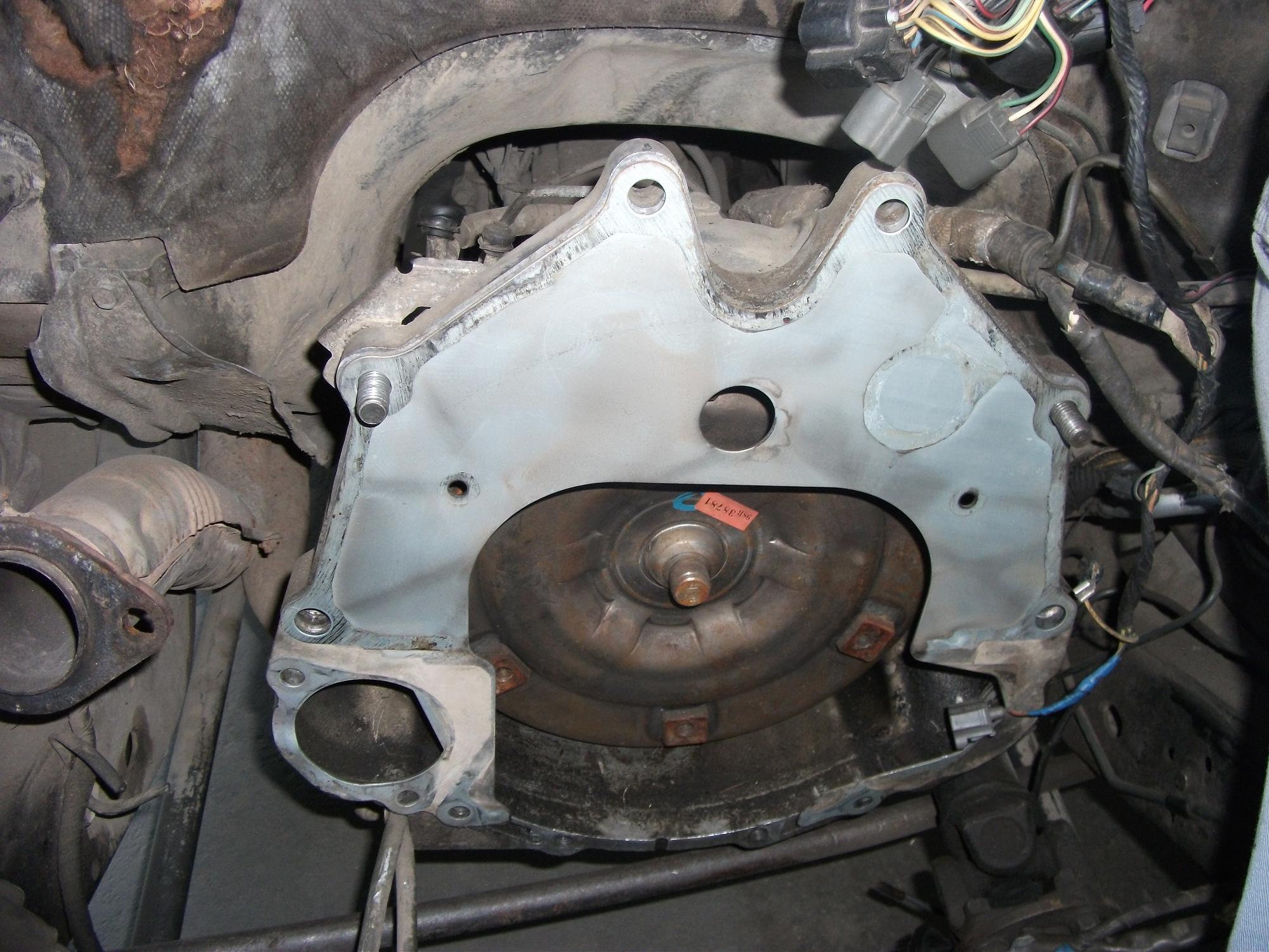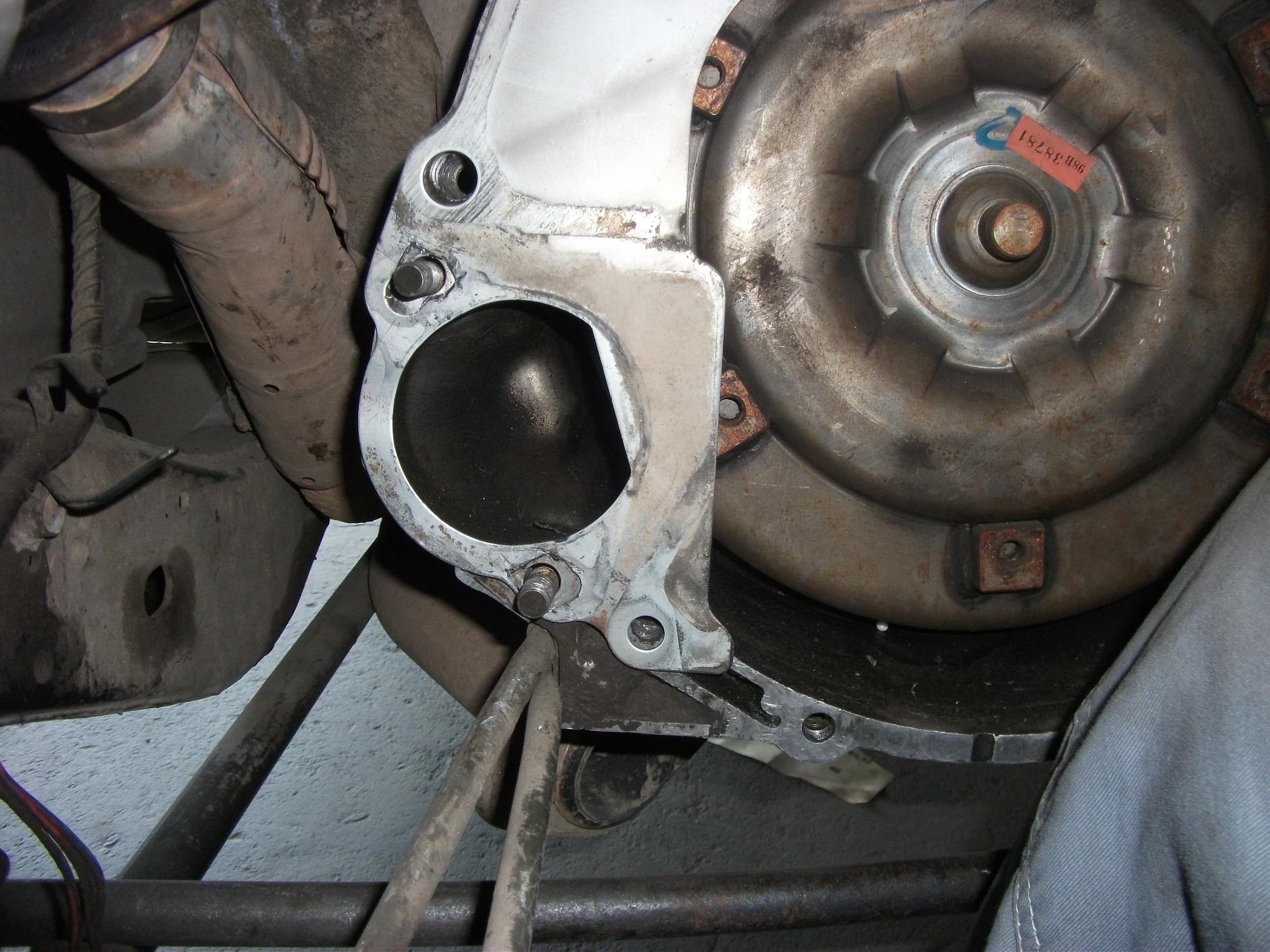 Пластина между АКПП и ДВС. Несовпадение отверстий под болты крепления стартера. Открутил маховик,открутил пластину,примерил. При помощи высокоточных приборов и специализированного инструмента пластина превратилась в то,что нужно. Подушки двигателя установлены на место,кронштейны остаются те,что на двигателе. Казалось,что мотор уже можно втыкивать на место...но не тут-то было...корпус коробки по отверстиям подходит прекрасно,чего не скажешь о гидротрансформаторе...всё-таки коробки на самом деле разные. Но...не настолько,чтоб всё бросить )))) . Проблема в том,что не совпадают отверстия на маховике Джедайского двигателя с резьбовыми отверстиями гидротрансформатора. Несколько подумав,пришел к выводу,что эксперимент надо доводить до конца. Принял решение: на маховике просверлю новые отверстия. Только пока не знаю,как точно выверить центр маховика,чтоб не получилось несоосности. Гложет червячок сомнения на тему того,что маховики Джедая и МПИ могут отличаться по диаметру,и тогда будет стоять вопрос стыковки со стартером...но против этого говорит то,что стартера и колокол АКПП одинаковы...