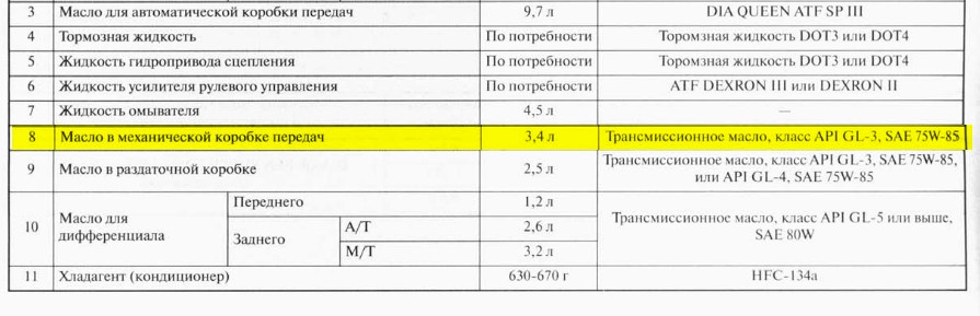 "Механическая коробка передач. по руководству GL-3, 75W-85. В условиях реальности советую 75W-90 GL4. Объём по руководству: 3.4л. Реальный объем: 3.2л.. Замена масла по руководству: каждые 45тыс.км.. В условиях реальности советую: Первая замена на 15тыс.км., вторая на 30тыс.км. далее раз в 30тыс.км. Или раз в год(что наступит раньше)."