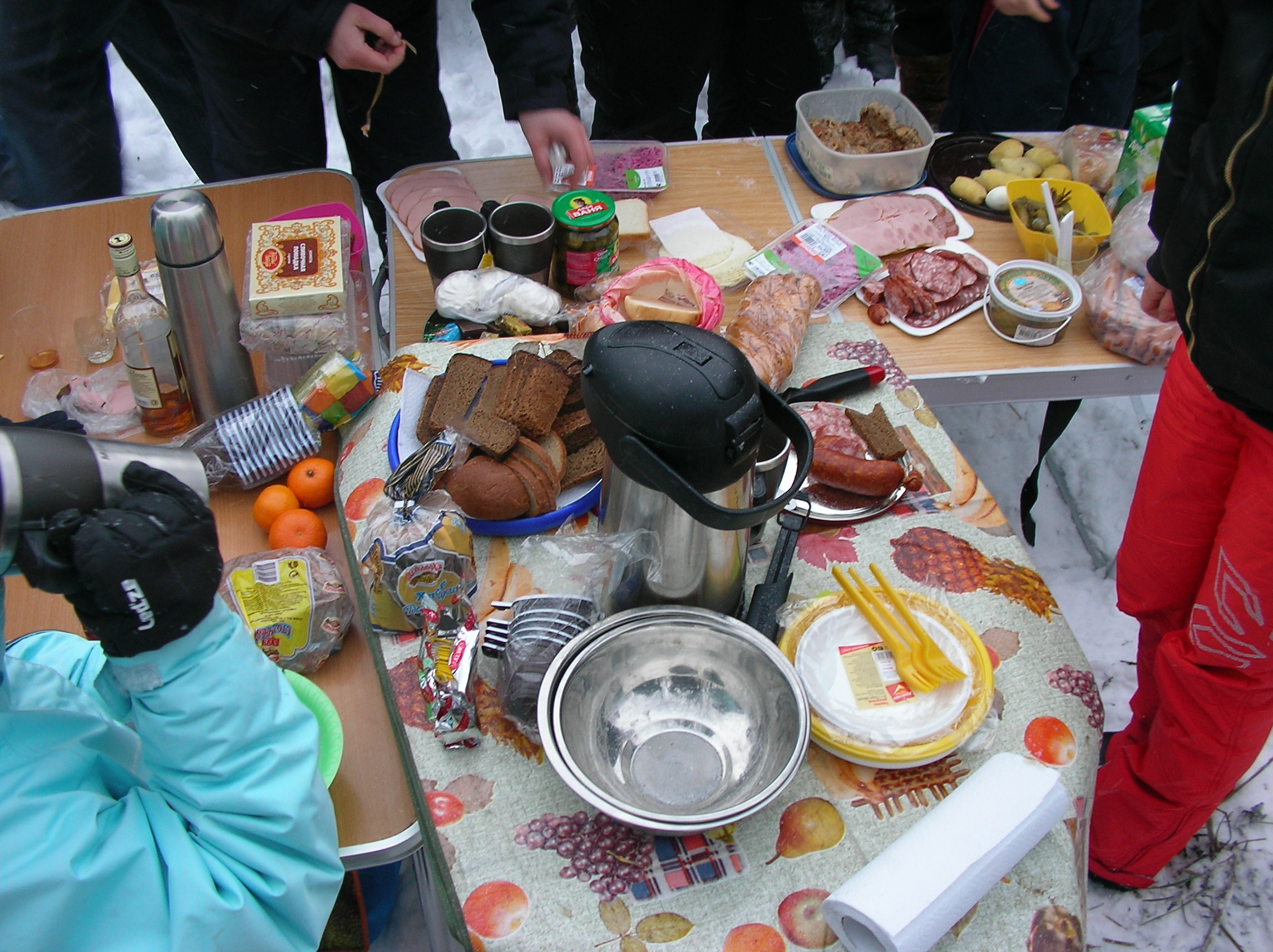 раскладывается еда по тарелкам..МОЖНО