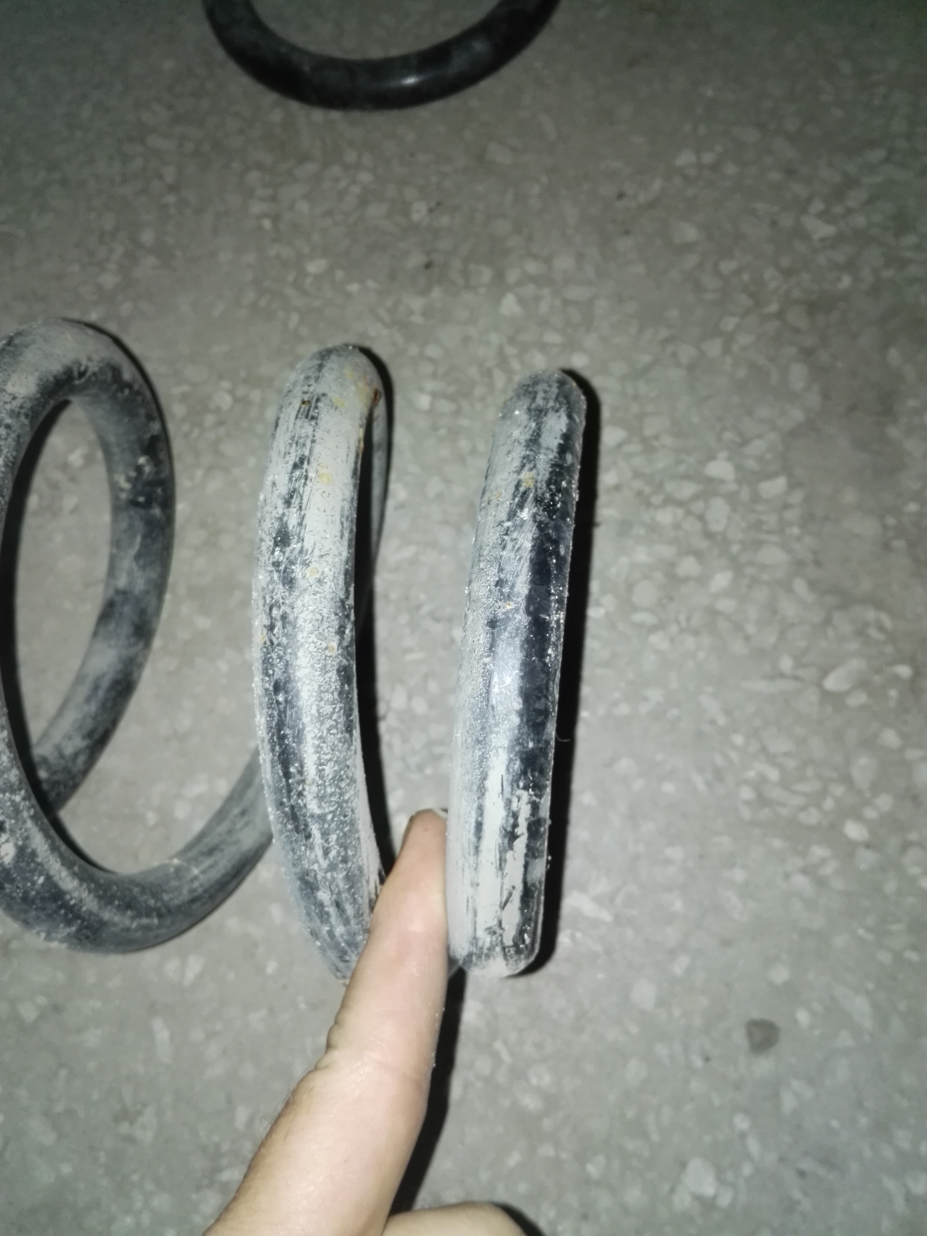 Сегодня сфоткал старые давно снятые родные пружины. На фото 1 видно, что если поставить на одну сторону стоит ровно, перевёрнутая стоит с наклоном. На фото 2 визуально расстояние между витками одинаково. На фото 3 в последний виток палец не лезет. На фото 4 палец пролазит. Вопрос так всё таки как поставить правильно.