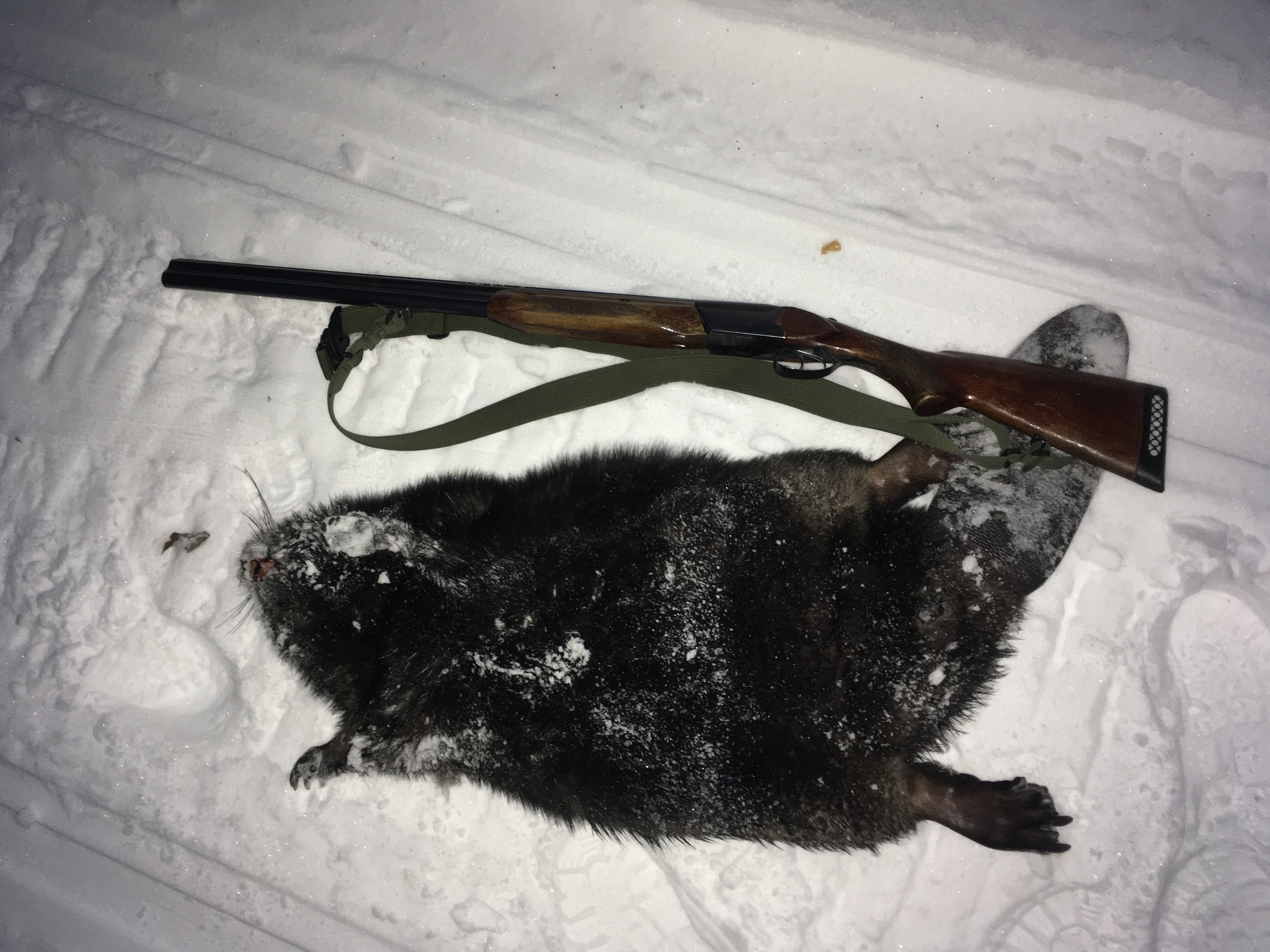 Да он особо не шифровался. Я к болоту подошел когда, издалека его приметил. Он по своей тропе из леса вышел, и в дырку нырнул. Я подошел поближе, затихарился за деревом, он где то минут через 25 из дыры вылез, я его на выходе и хлопнул. Один выстрел, картечь 6.2 Феттер.kyzya11 писал(а):как подпустил то?Patrik84 писал(а):Пошел на даче под вечер прогуляться на лыжах, так, без особых надежд, чисто следы посмотреть. Добрел до знакомого болотца и встретил вот этого господина ) Приметил издалека, когда он из леса выходил по своей тропе. Ну в общем не повезло емуА потом 3 километра пер его на импровизированных санках через лес, умотался в хлам.