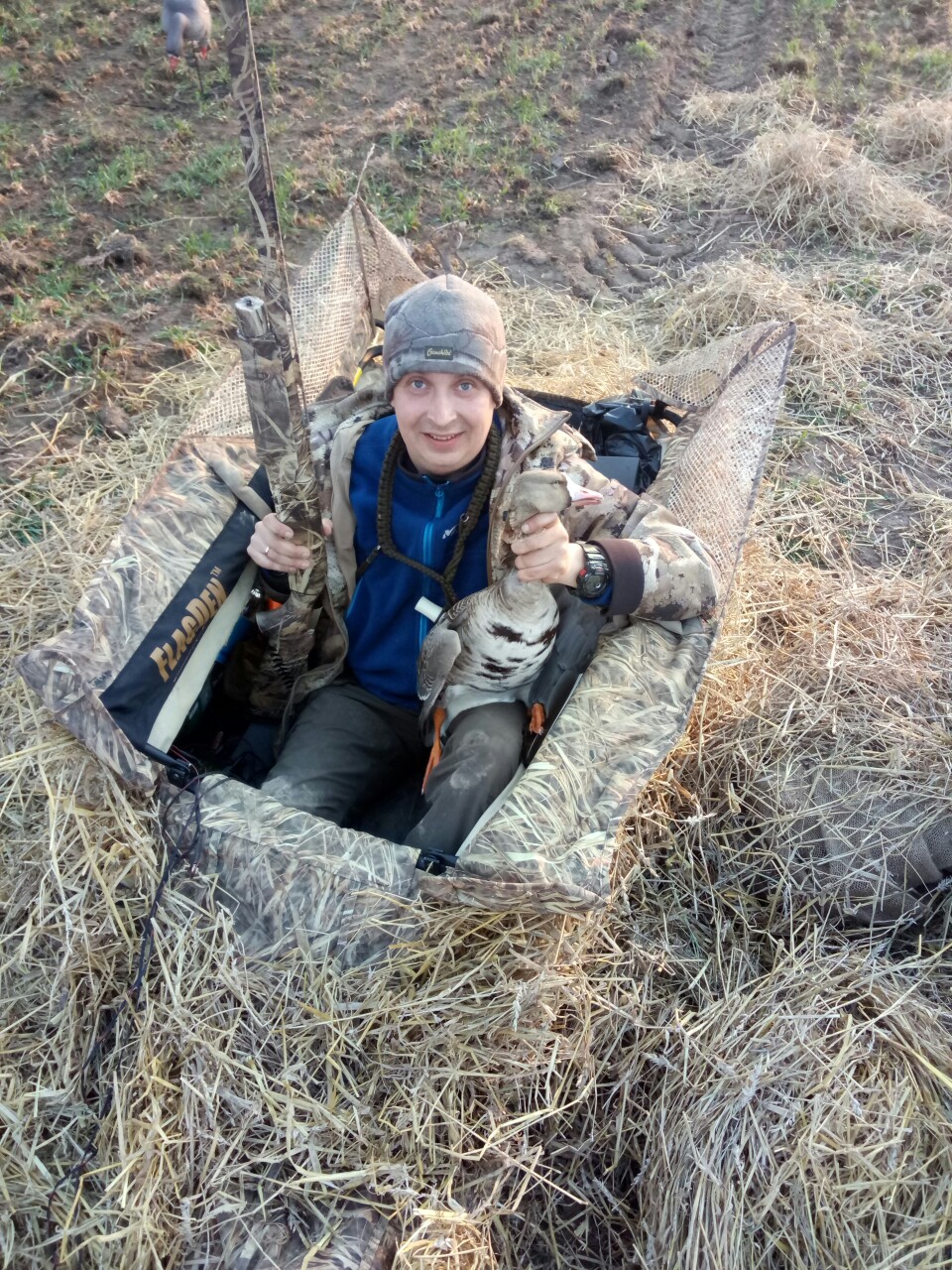 Север Тверской. Охота на зеленях, лежачие засидки, маскировка соломой, стрельба 3ка, 1ца. Напитки в лагере водка, виски, шулюм из селезней на подсадную. Норму взяли. На второй день всего три налета. Сегодня вообще тишина. Гусь ушел или ещё не прилетел. Всех охотников с открытием сезона.