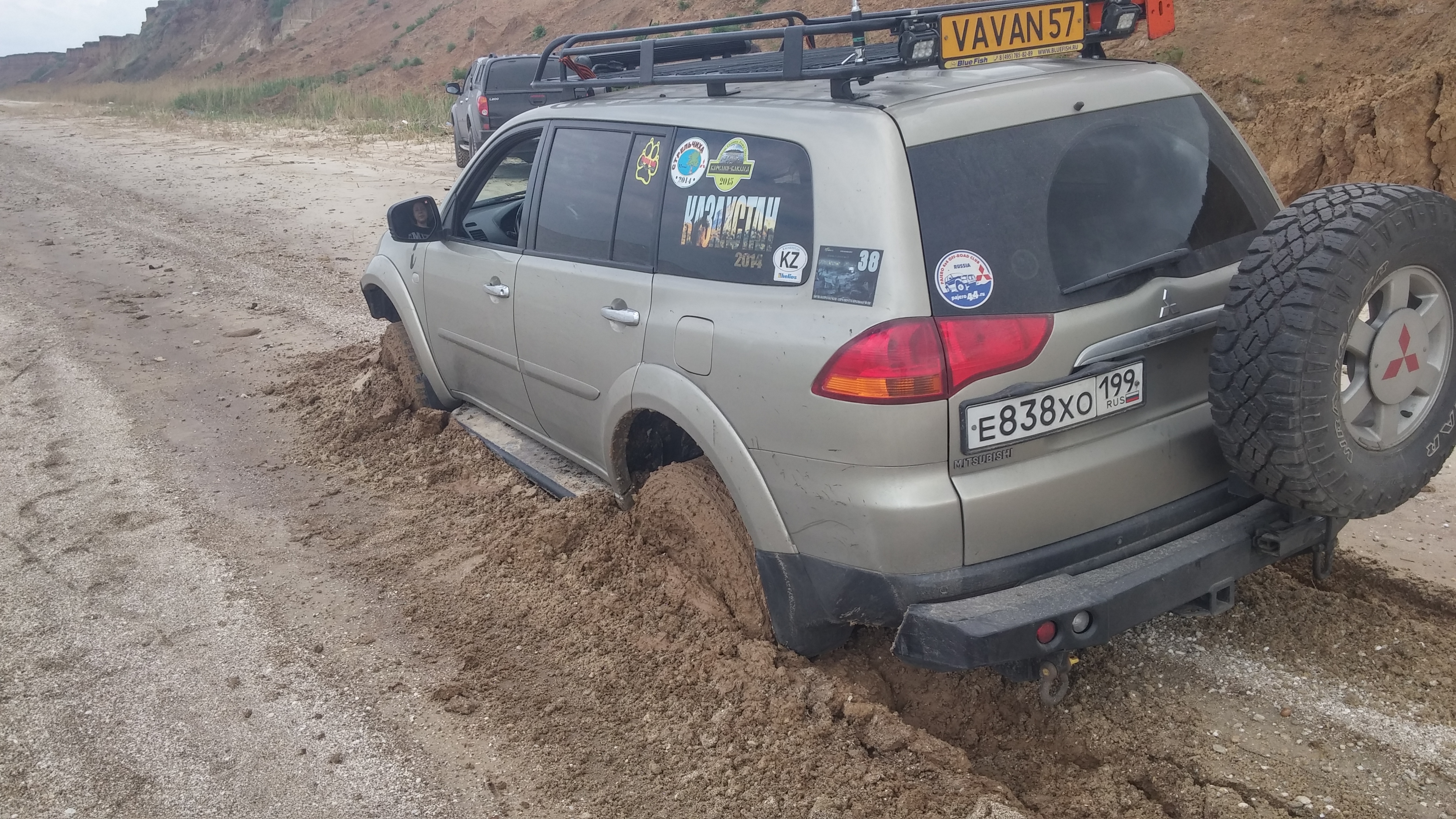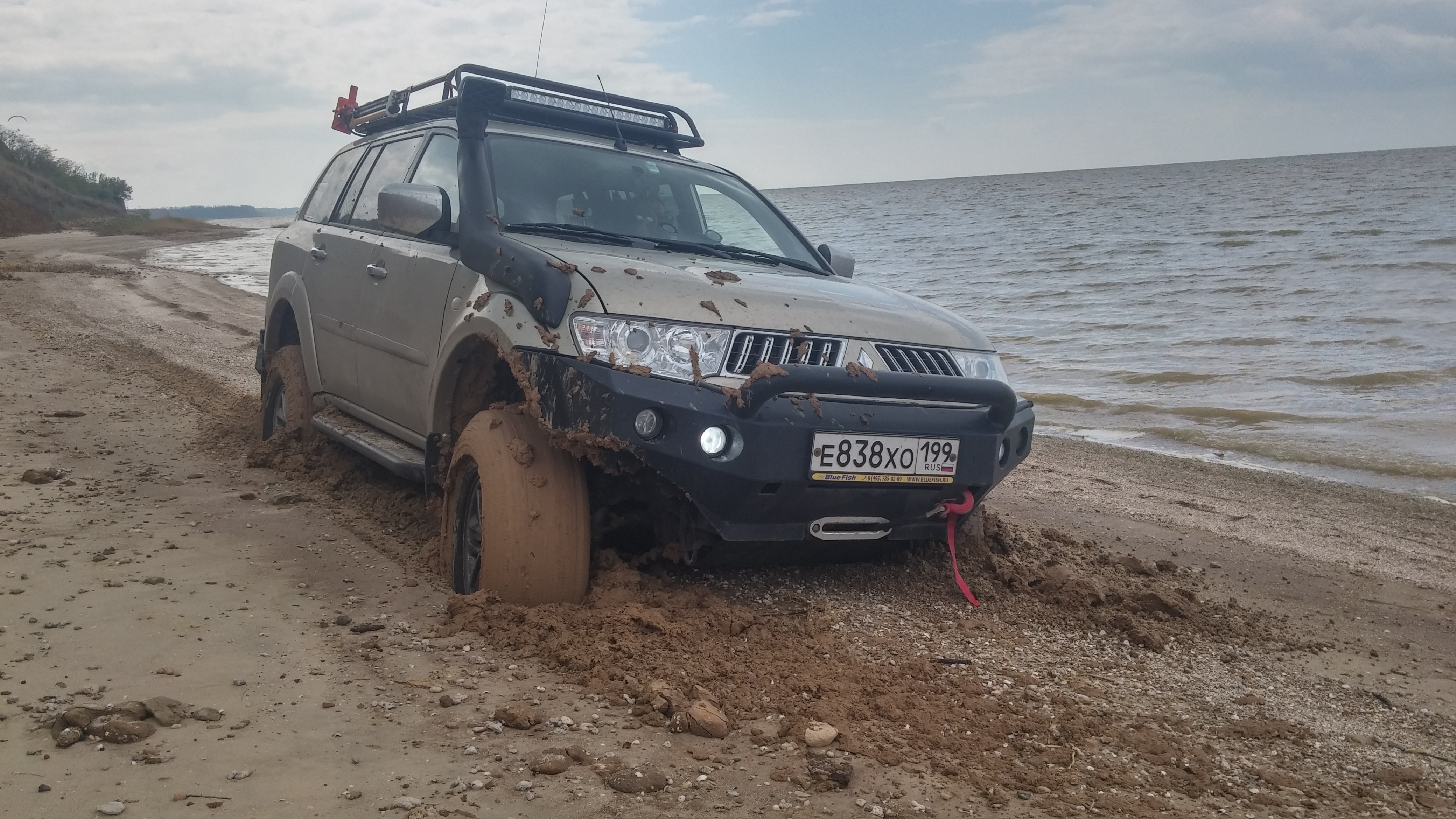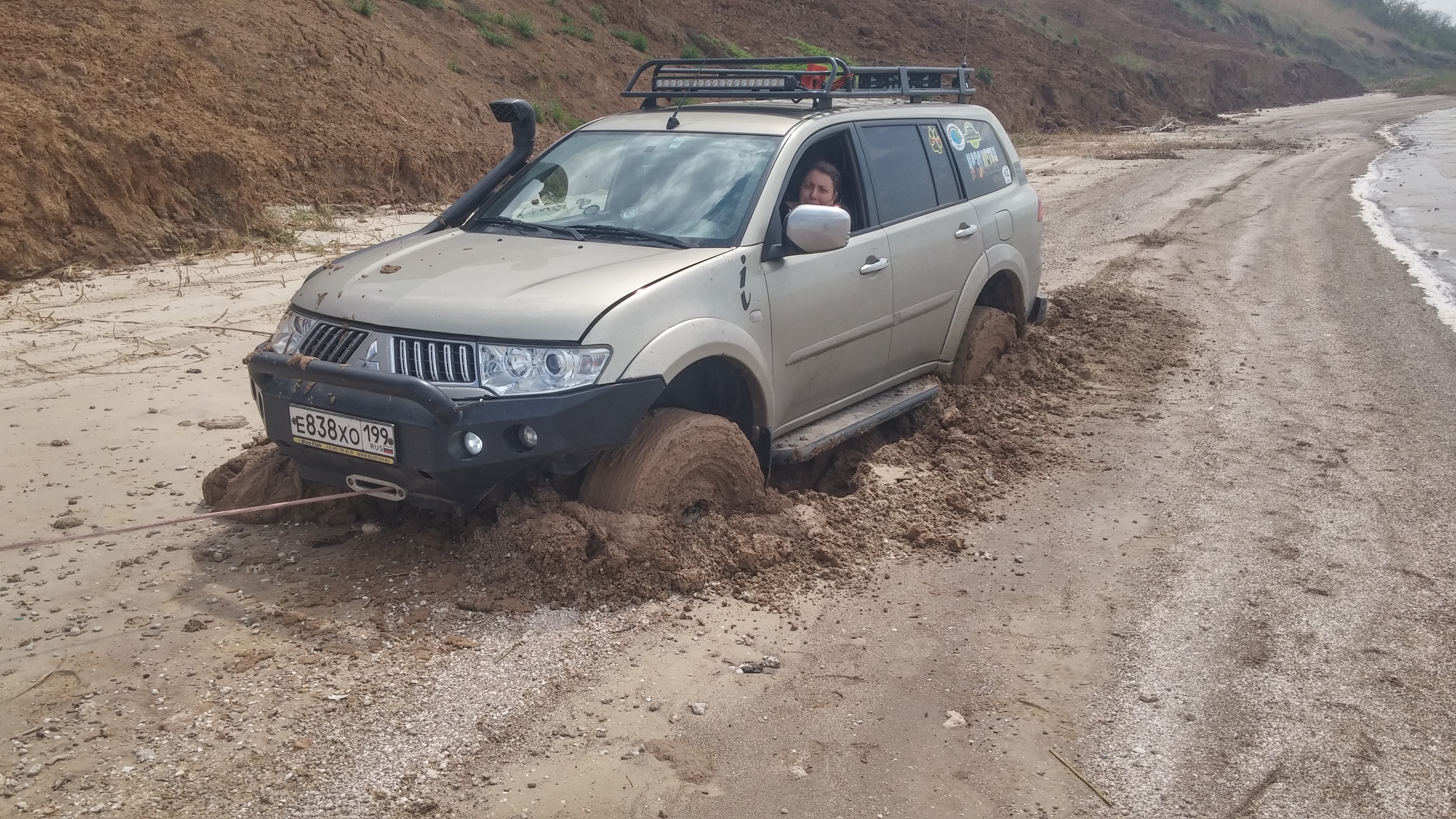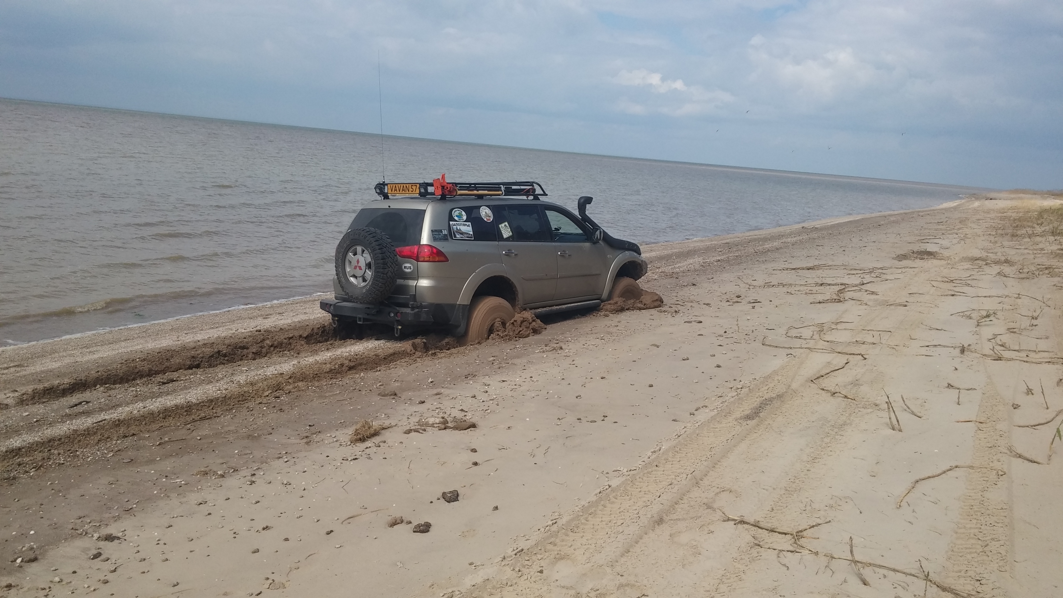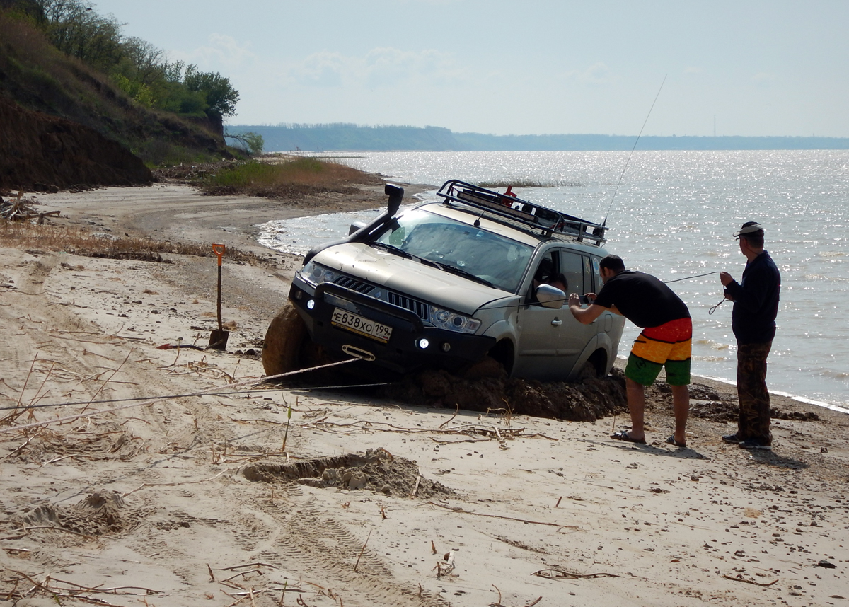 На первые майские скатались на Азовское. Машина провалилась мгновенно, как под лёд. Вытащили 2 лебёдками + Toyota в роли якоря для Эльки.Какие то зыбучие пески?