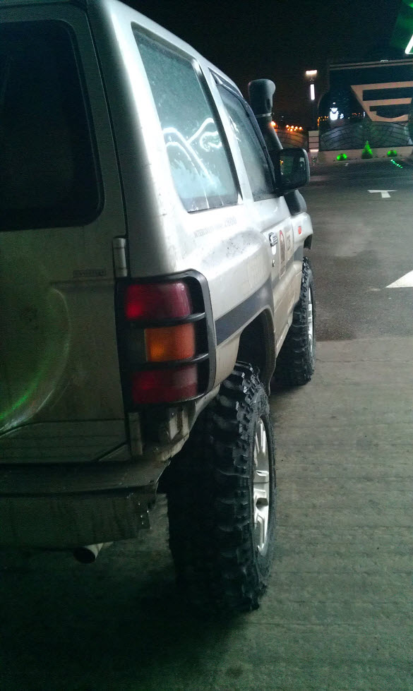 91 г.в., 3дв., арки подстрижены,нелинейка 60-0, 285/75/16"М/T, гена 110А под капотом+OPTIMA YT, танковый ближний ксенон, Recaro, демпфер Nissan и ещё амортизаторы от разных машин - был...