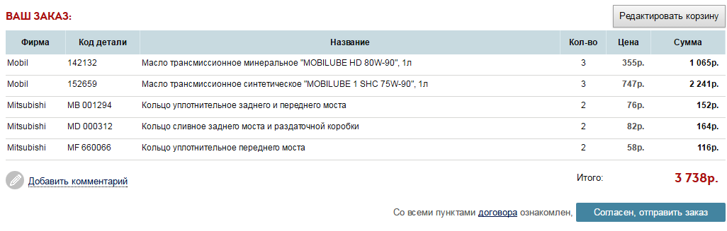 И это у митсу, кстати не только к маслам в мосты и раздатку относится, а ко всем маслам, то есть никакого выбора, никакой альтернативы, я считаю это не правильно!