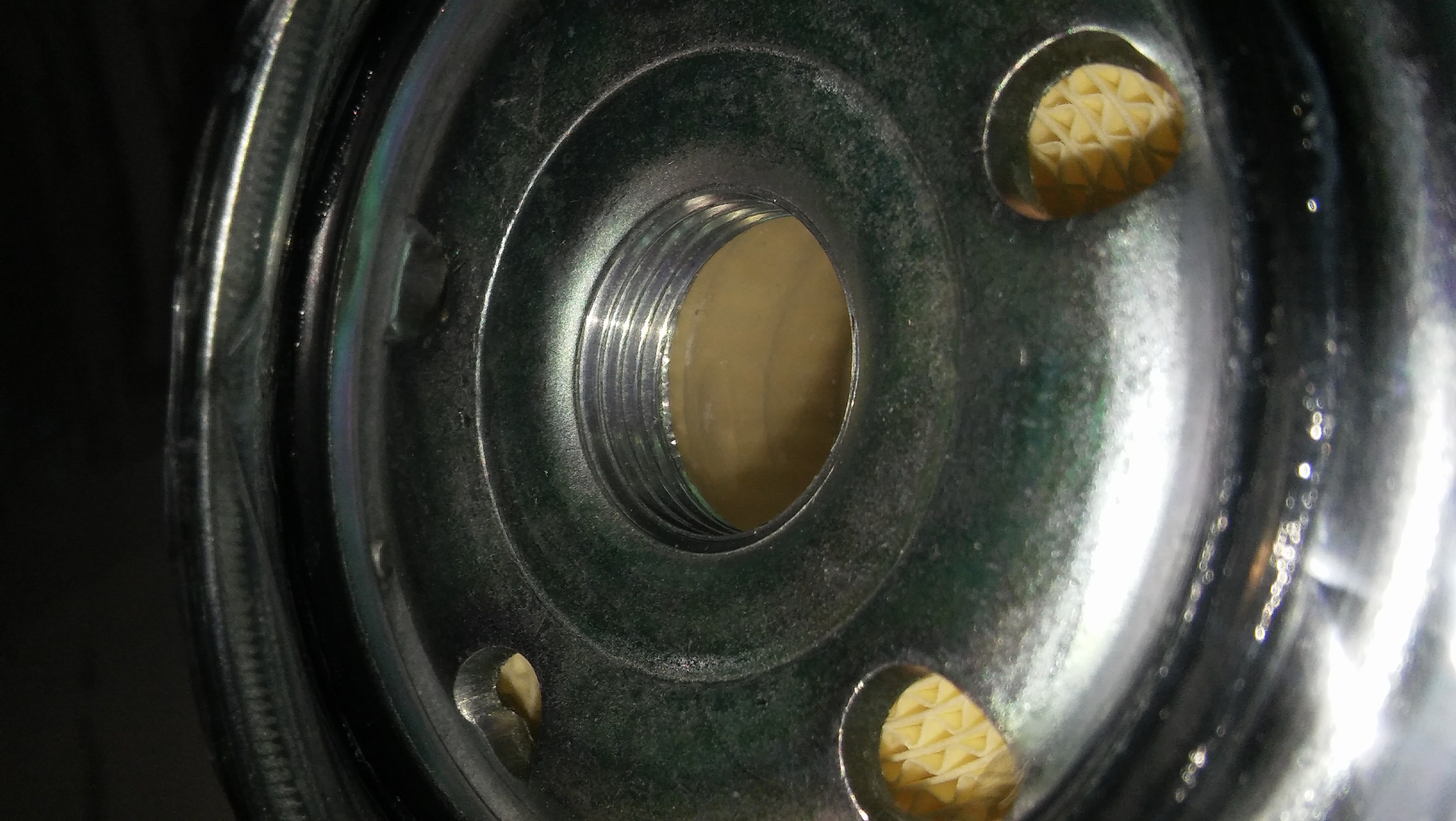 Сверху (где резьба) заклеено прозрачным целкой, снимать не буду), сфоткать могу.