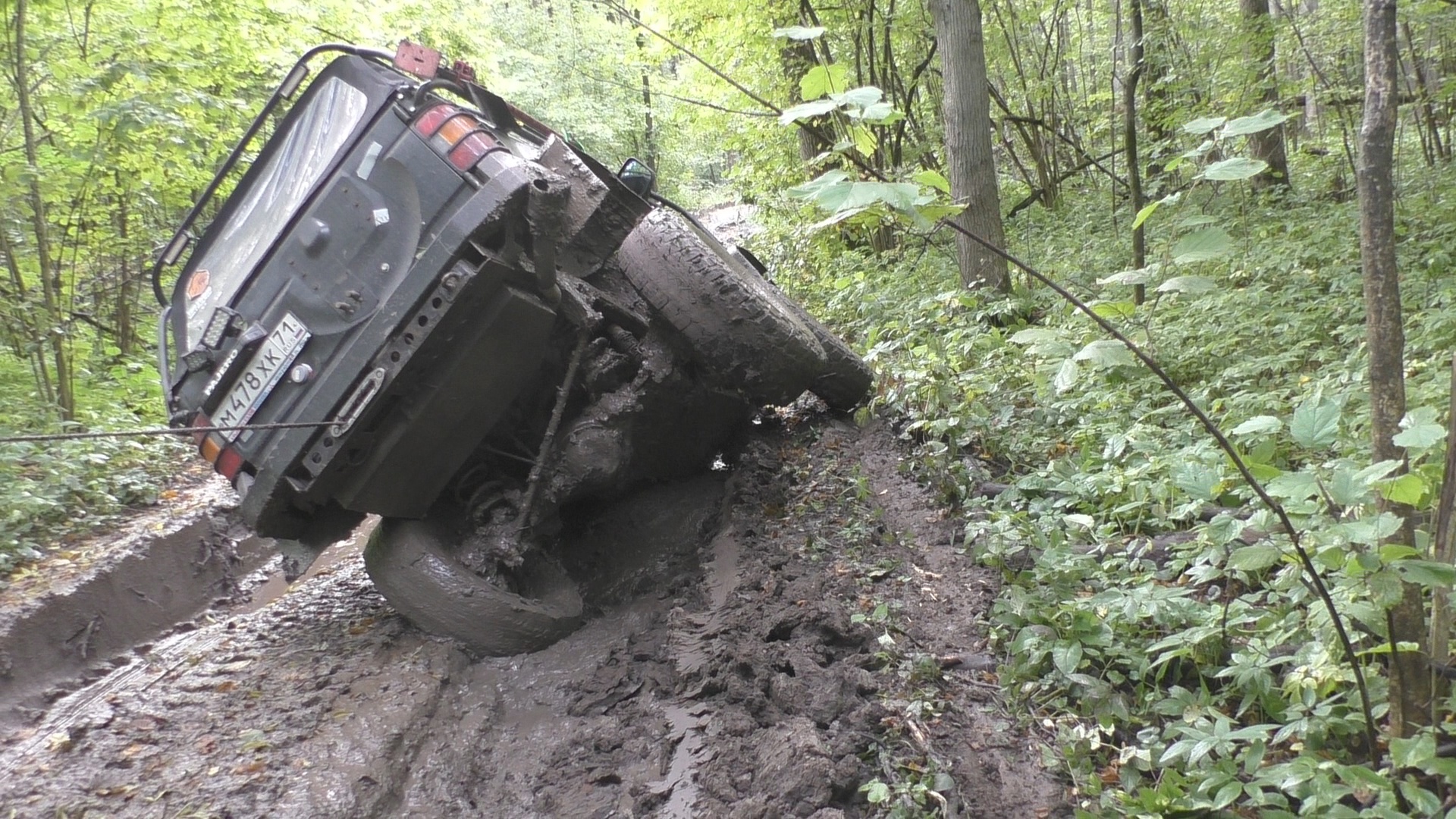 так он вполне неплохо ехал. Как бы то ни было, а именно на этой колее ехало то, что туда не помещалось, а именно уаз на колхозах и нива