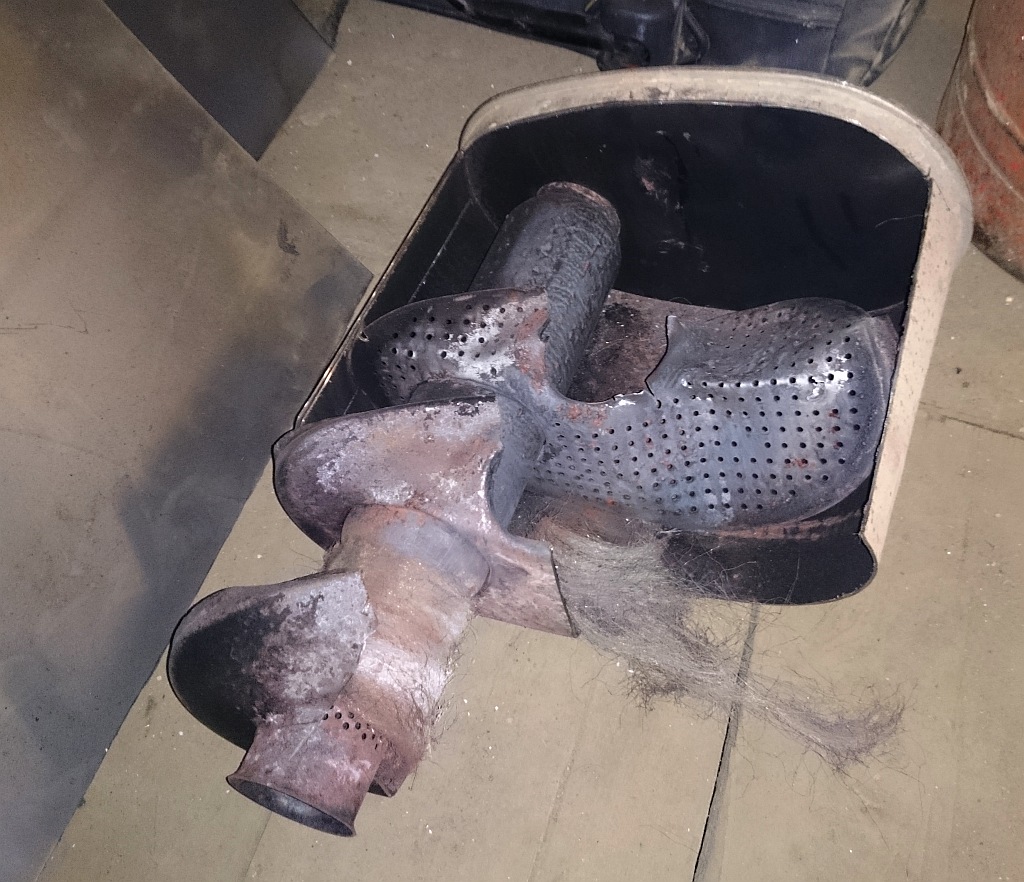 внутри хрусь-хрусь... а выходная труба вообще отгибается примерно на 5 градусов и внутри пересыпаются куски перегородок.
