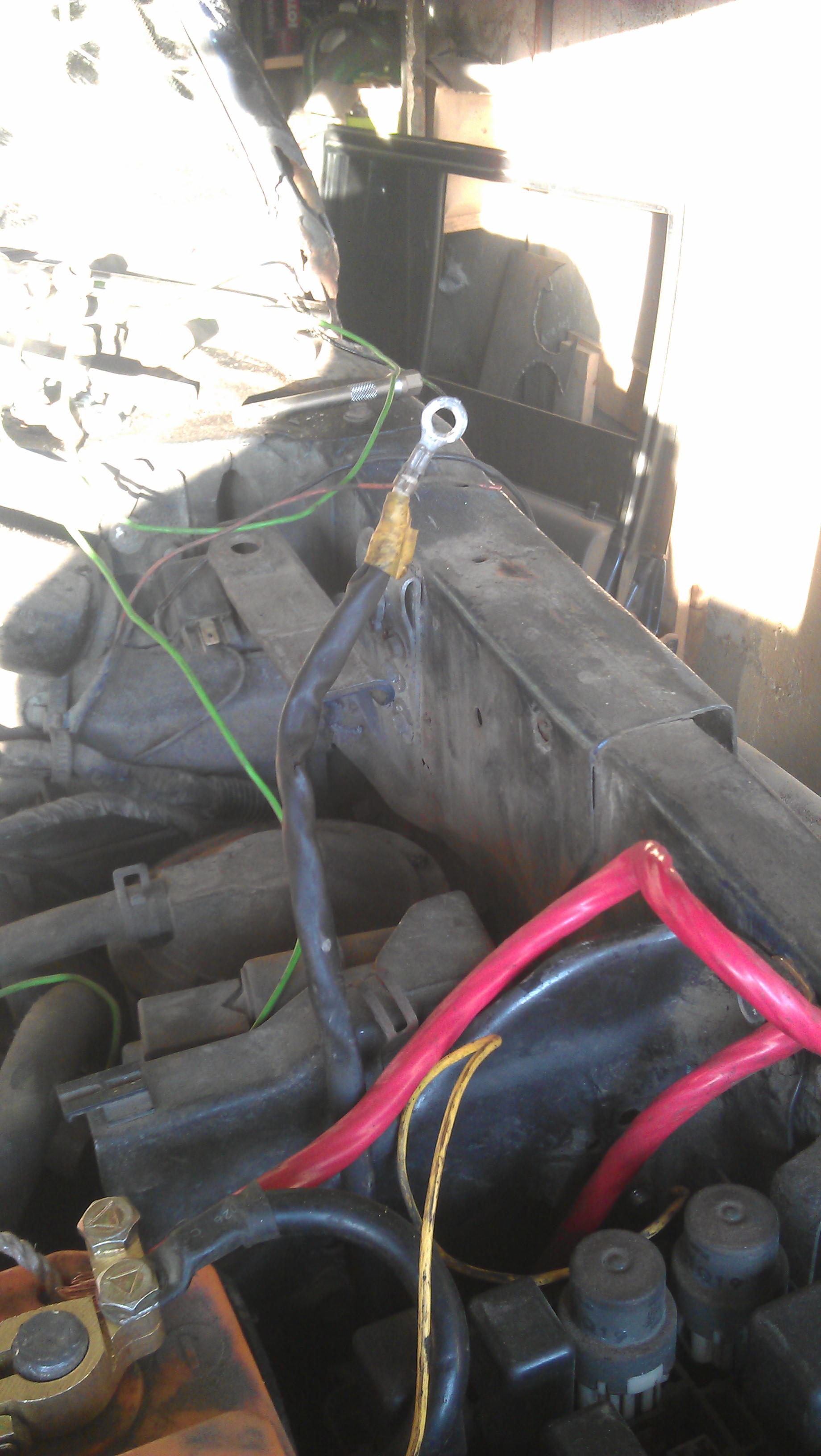 вот идет коса через телевизор по крылу. поворотник . часть идет в стойку, а часть в отверстие в крыле и внутрь подкапотного. там на абс . на воздухан, к дроселю и длинный жгутик в низ к самому стартеру с 3 клемками. заканчиваются около вакуумных тубок..... вечером сфоткаю короче....