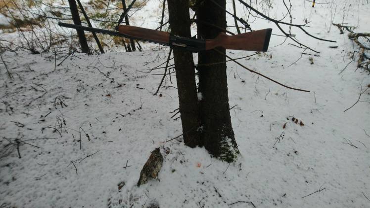 Всем ДВС! Сегодня снова ездил на охоту. Приехал в угодья в 09:30,первый рябчик ответил около 10:20,но так и не подлетел. Ходил до 14:00,потом решил поехать в другое место. Туда приехал в 14:40,рябчик прилетел в 15:20 молча и сел на ветку ели в 10 метрах от меня. Стрелял дробью номер 7 б/к (феттр удача). Добыт чисто, вся дробь на вылет. При ощипывании и потрошении был обнаружен полный желудок рябины. Пошёл мелкий снежок, прошёл вдоль речушки, но больше ни ответа и ни подлёта, начало быстро темнеть, пошёл к машине. В общей сложности прошёл сегодня 9 км.