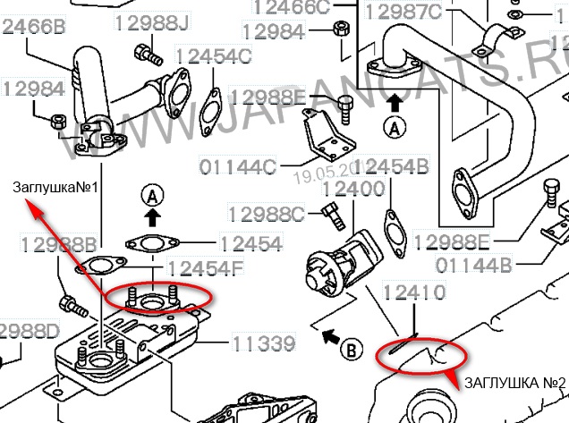 в итоге: оставил на месте заглушку №1 (на выходе из охладителя)...трубу подвода выхлопных газов и клапн ЕГР водрузил на место(предварительно почистив его и приведя в работоспособное состояние)+еще и вакуумную трубку поставил на место к клапану ЕГР(пусть его открывает\закрывает,все равно во впускн. коллектор теперь только чистый воздух идет) ....