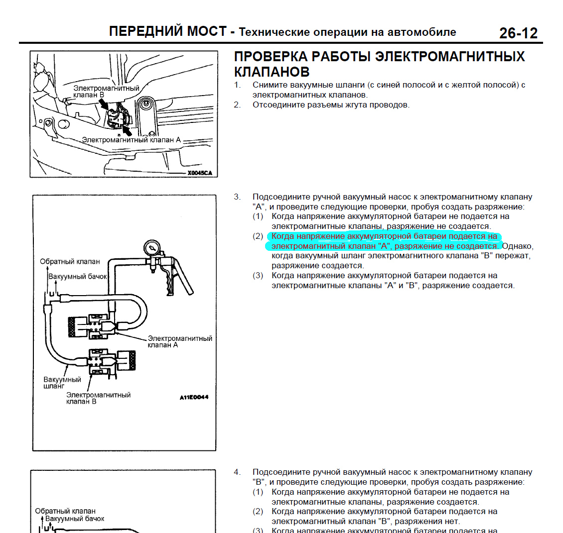 В общем, еще раз суть вопроса. Может ли кто на досуге проверить пункт, выделенный синим цветом. Нужно снять фишку с клапана "B" и посмотреть есть ли всасывание на штуцере клапана "А"? Или у меня все таки что-то не то с клапанами (новыми!) или манула неверный. Ну или я олень, что тоже исключить в нашем деле никак нельзя.