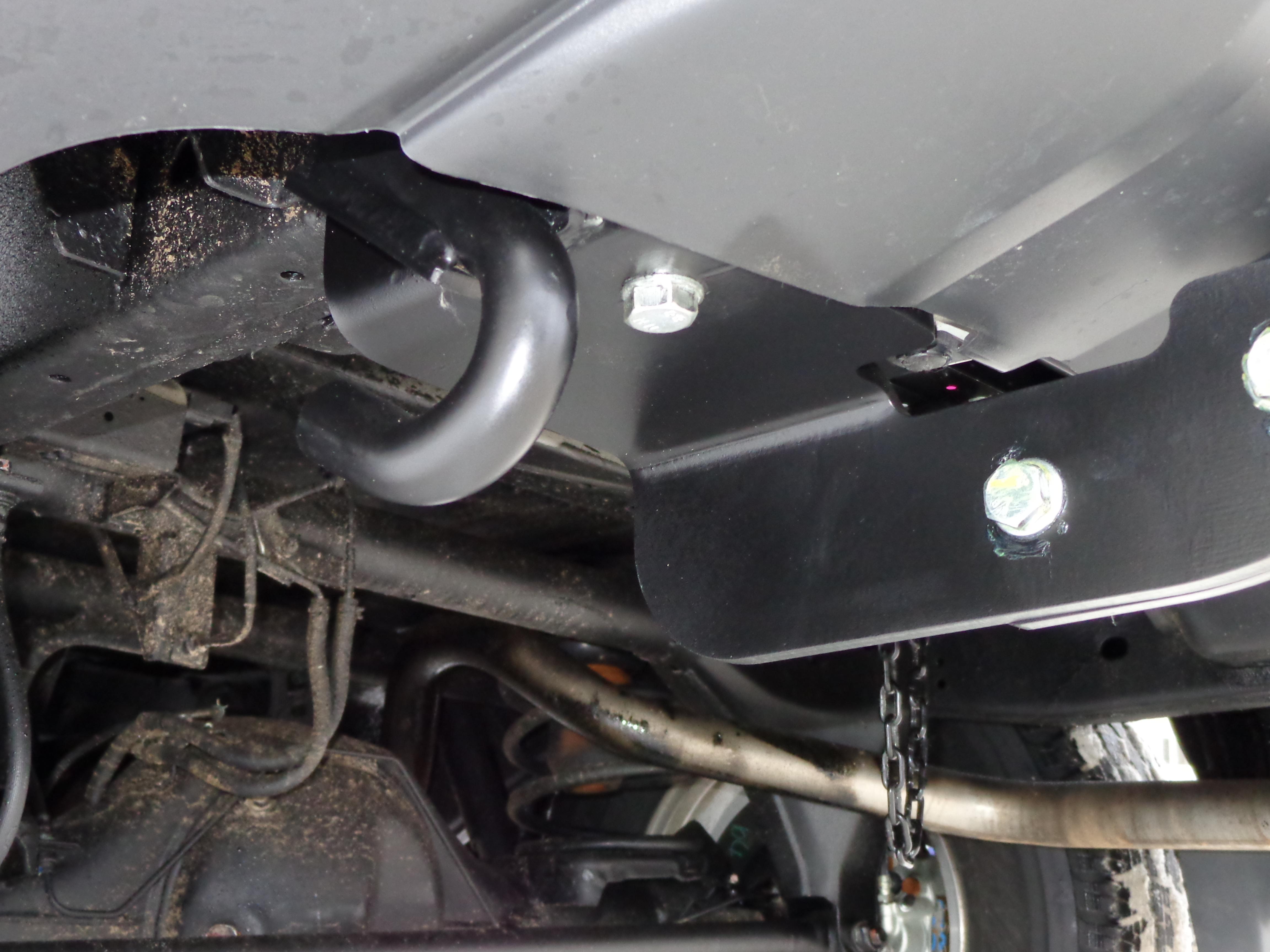 Буксировочные крюк и петля остались в первозданном виде, никаких новых дырок в раме и кузове не появилось.