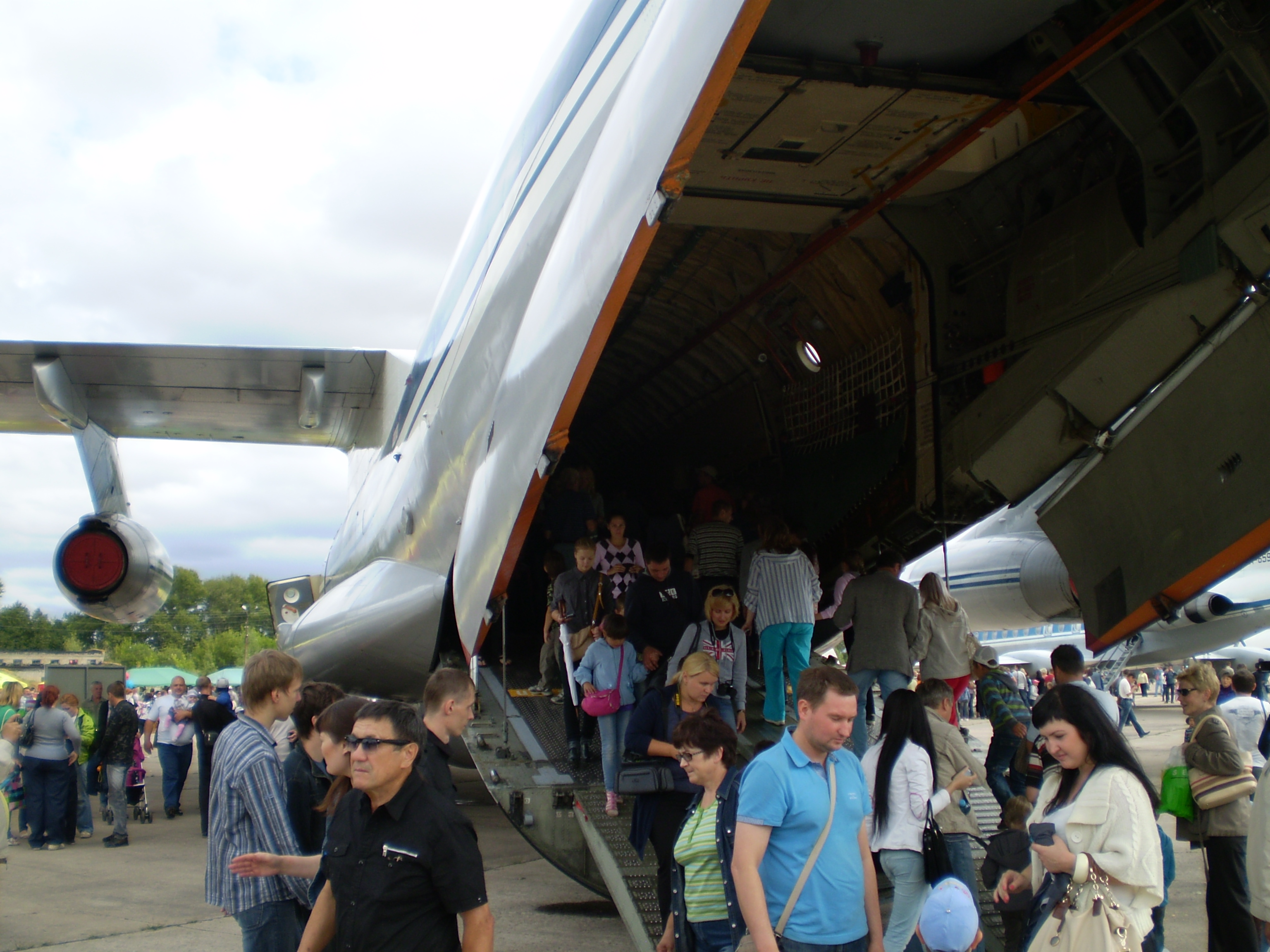 пы.сы. Мы только не поняли,те самолёты которые стояли на выставки,они тоже летают или уже нет???? Вот такая бандура тащила на себе почти целый вагон я так понимаю КЕРОСИНА? Сколько влазит вон в того КАМУФЛИРОВАННОГО красавца??? Прикольно ! Жаль ШОУ не видели. Точнее не могли узнать будет или нет,кто говорил да ,а кто не будет,так и не поняли и ушли. Правда видели 3 красавцев я так дума Ту-шки летели ровненько и красиво!!