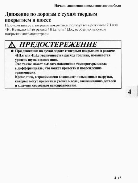Давай так - не написано "следует". Написано "можно". Если читать внимательно, то и 4Н тогда тоже "следует". На 2Н МОЖНО ТОЛЬКО по сухому. На 4Н можно И по сухому, И по мокрому. Ну, если читать как написано, а не как хочетсяX-Ray писал(а):Маркетологи тут ни при чем, потому что в написании руководства по эксплуатации они не участвуют - до этого, слава богу, ещё не дошло. А в руководстве сказано, что двигаться по дорогам с сухим и ровным покрытием следует в режиме 2Н. Режим 4Н, будь хоть он трижды основной конструктивно для трансмиссии (а не для автомобиля в целом, водятела, и т.п.), для таких условий избыточен.