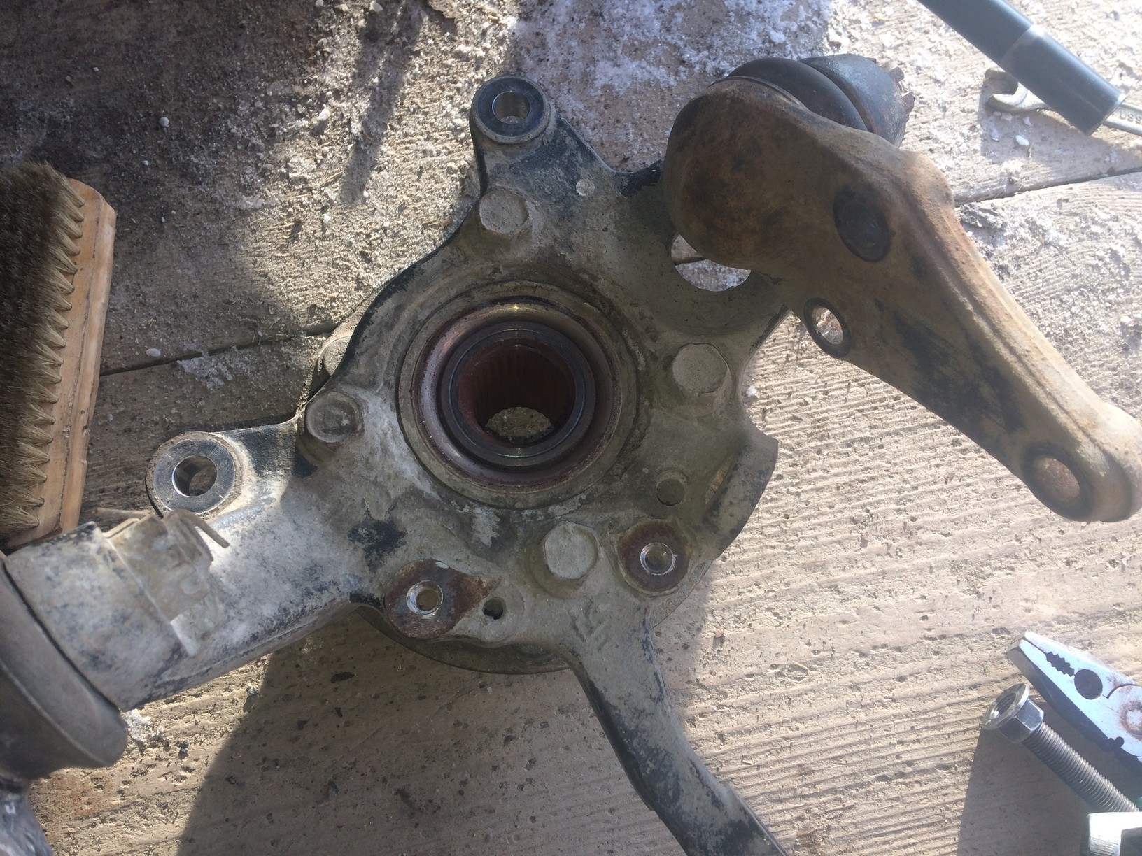 Вот и я доехал до замены ступичного подшипника. Предъистория. Сначала заклинил передний правый суппорт. Хорошенько подогрел видать ступицу. Суппорт перебрал и поехал в новогоднее путешествие. Тормоза отлично. Но проехав за новогодние праздники 1500 км подшипник загудел. Пробег 78000 км. Как то так.