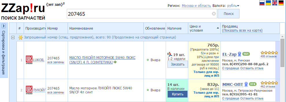 у нас в деревне zzap'а нету, а если пересылом, то масло золотое выходит...VAZ писал(а):http://www.zzap.ru/default.aspx?partnum ... ata=207465 На ZZap.ru розница вообще от 832руб начинается.