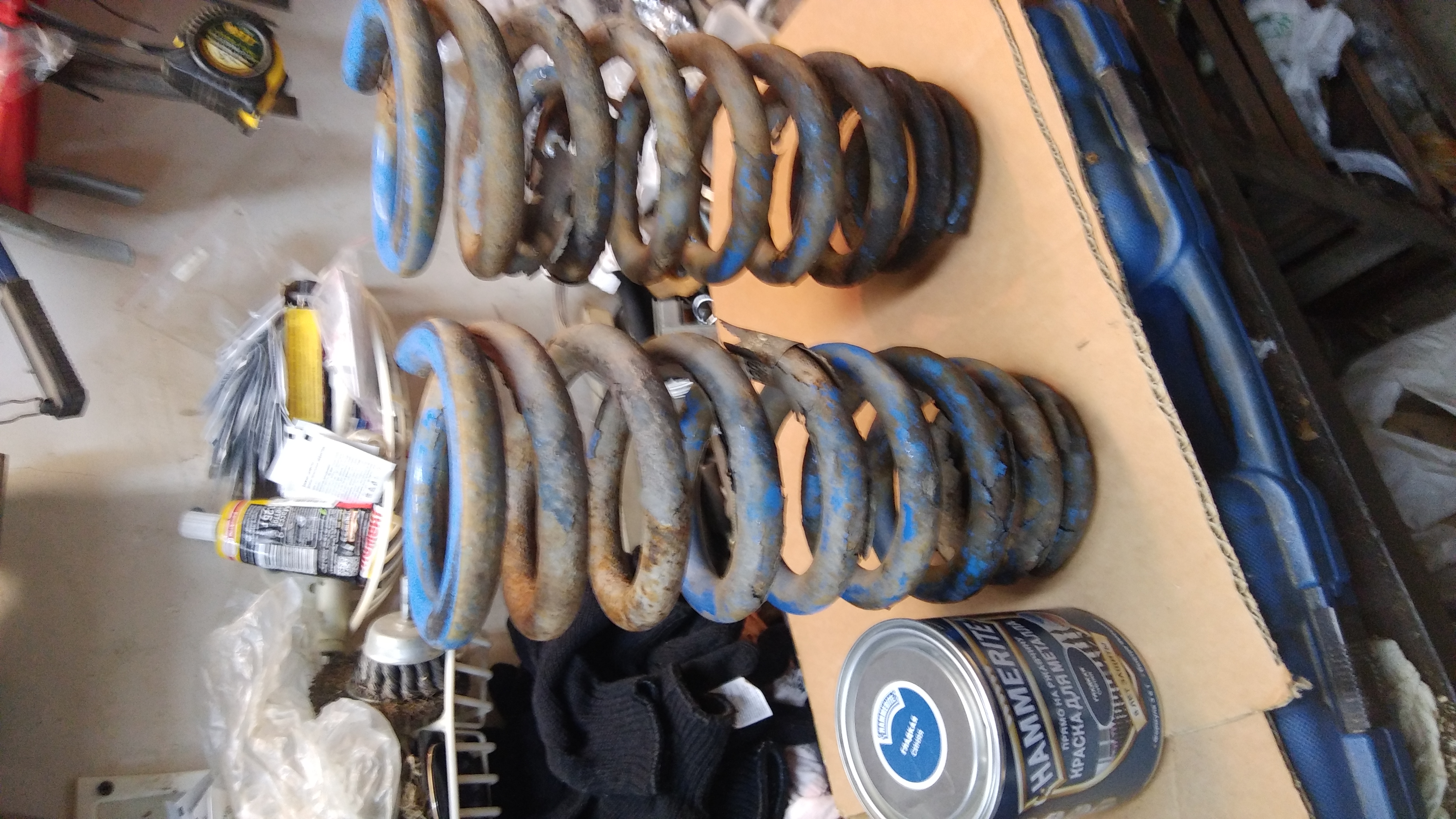 Заменил передние аммортизаторы. Поставил снова KYB Skorched4s 841001. Пружины ободрал карщеткой на шлифмашинке ну и немного вручную - напильник, скребок, наждачка. Покрасил на 2 слоя хамерайтом. Внешне- понравилось, доволен. Фото не влезает, а на тлф сжать не получается. Попробую попозже выложить.
