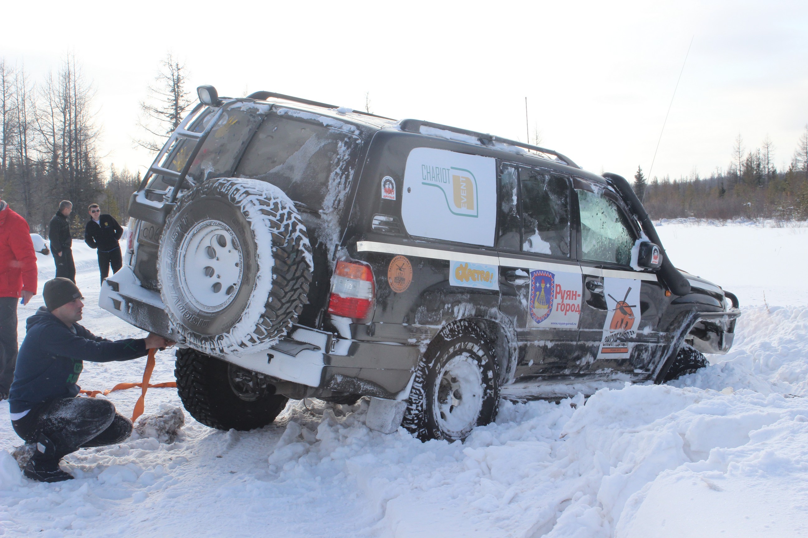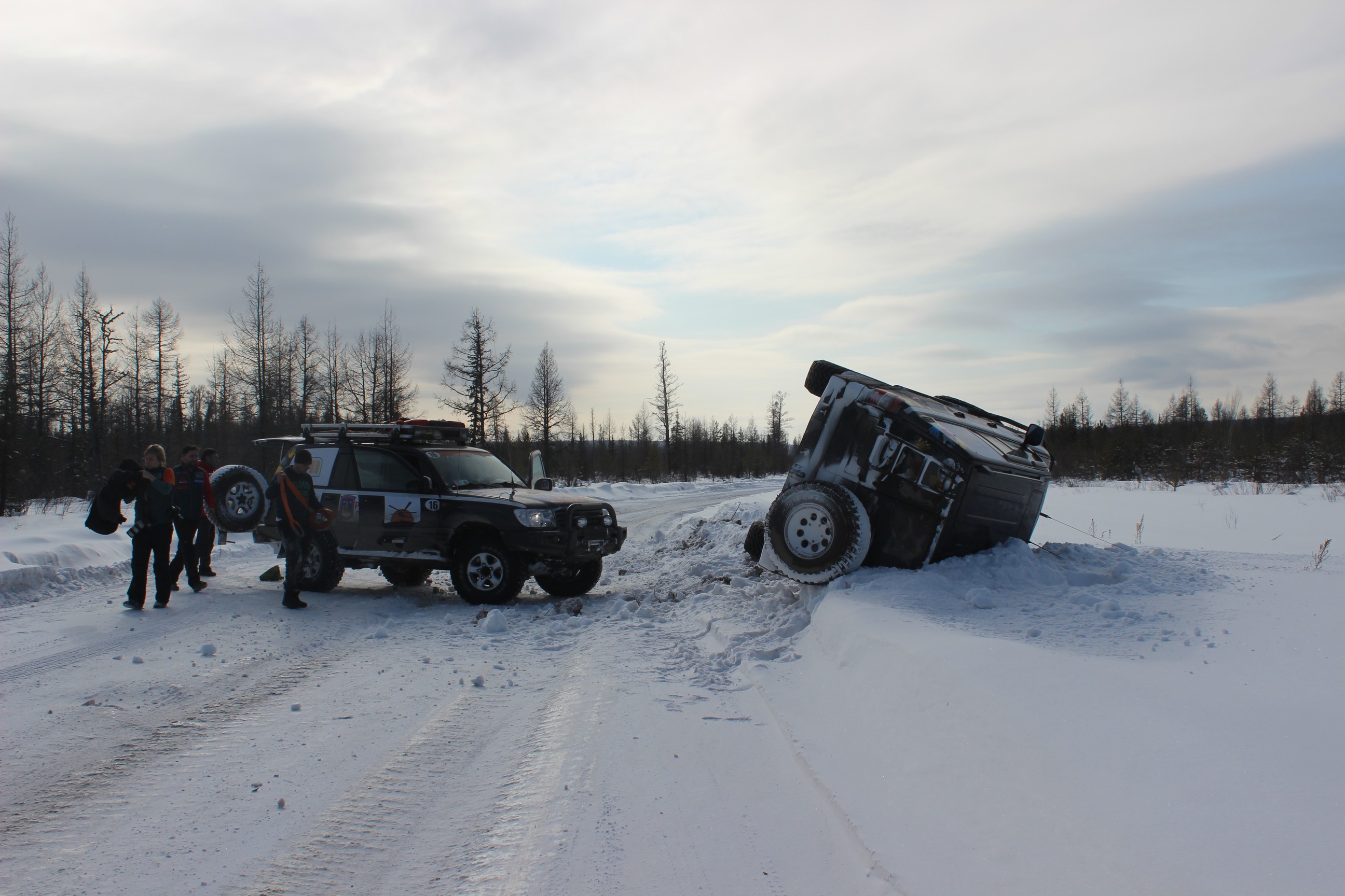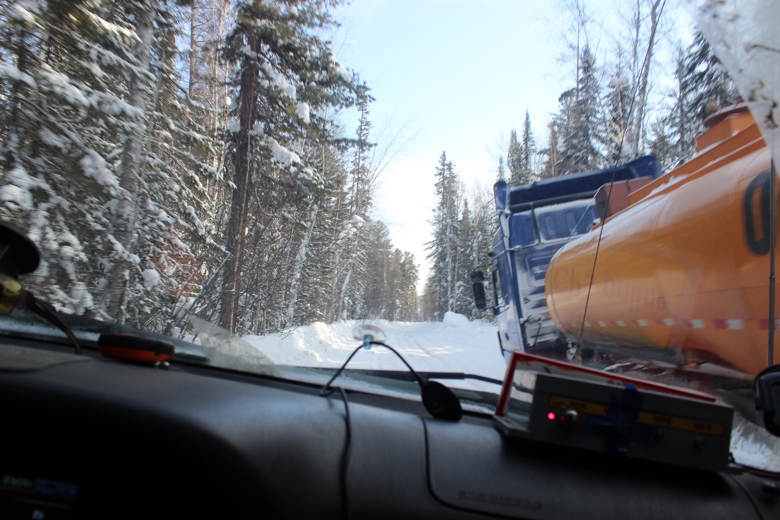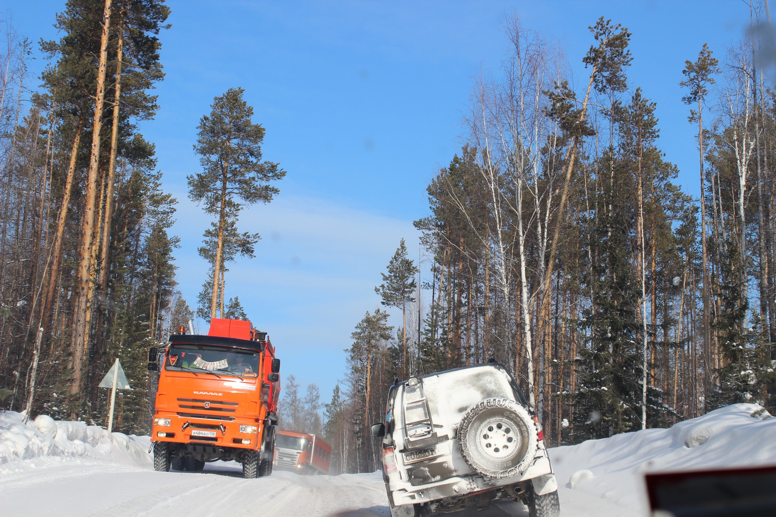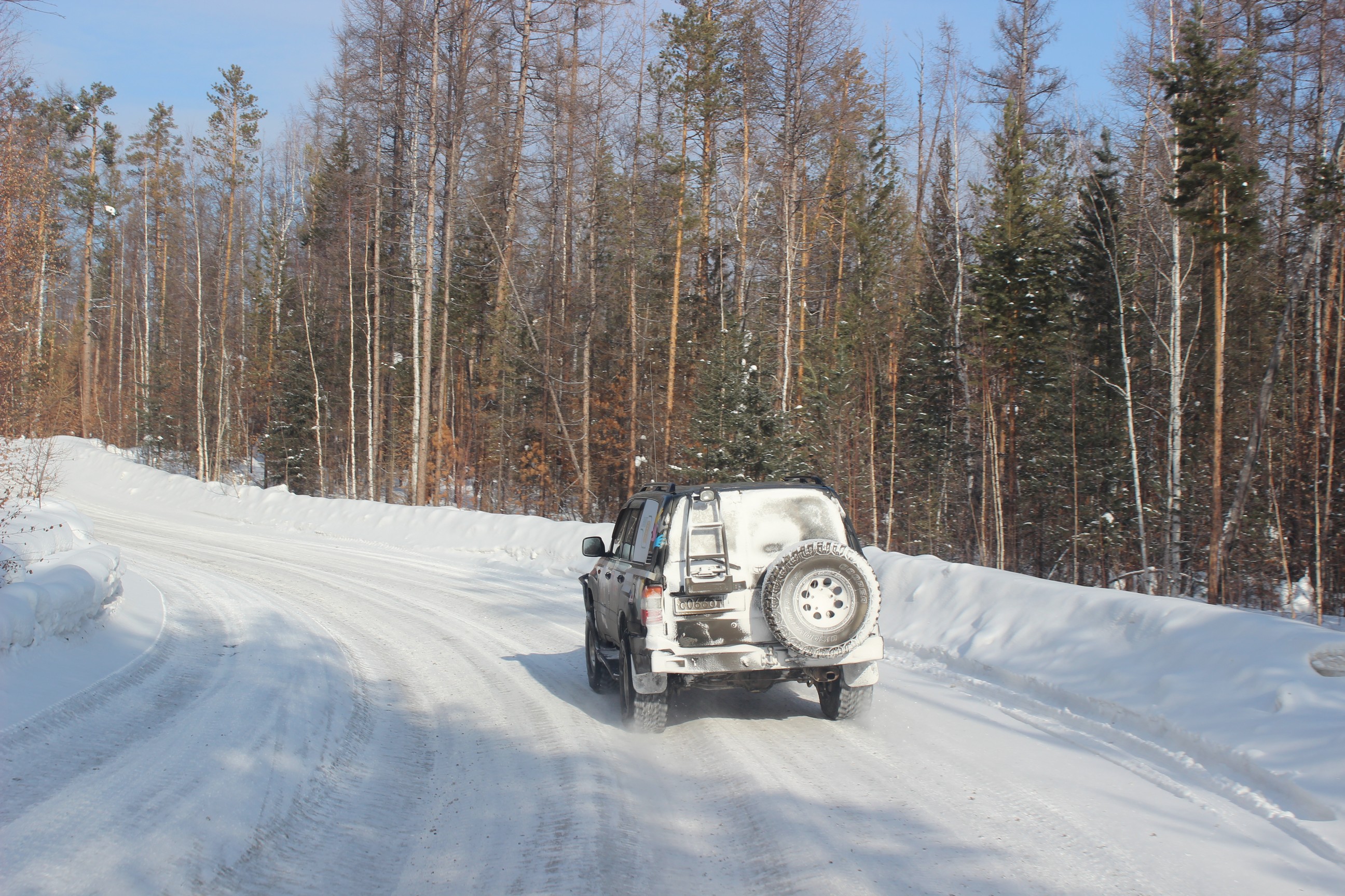 Микола писал(а):Всем доброго дня ( или ночи)!!! Ну вы и строчиите! Круче чем мы км наматываем, хотя... За пять дней пробег составил под 6000 км. Мы уже во времени потерялись совсемЛетим по трассе на Хабаровск, осталось 900 км. Позади зимники, до Мирного вообще дорога не ахти. Сначала сломали рулевую тягу на 100-ке, поменяли. На след. день положили 105-ку на бок. Поставили, выплюнули масло с поршневой, завели, помчали дальше. Солярки не хватило, прикупили у местных дальнобоев 60 литров. В Мирный вьезжали на парах! Конечно местным водителям поставить памятник при жизни!!! Это нам там развлекалово, а они на этих зимниках проводят полжизни! Бьются, переворачиваются, ломаются, застревают, но продолжают ездить!!! Вот так же и мы