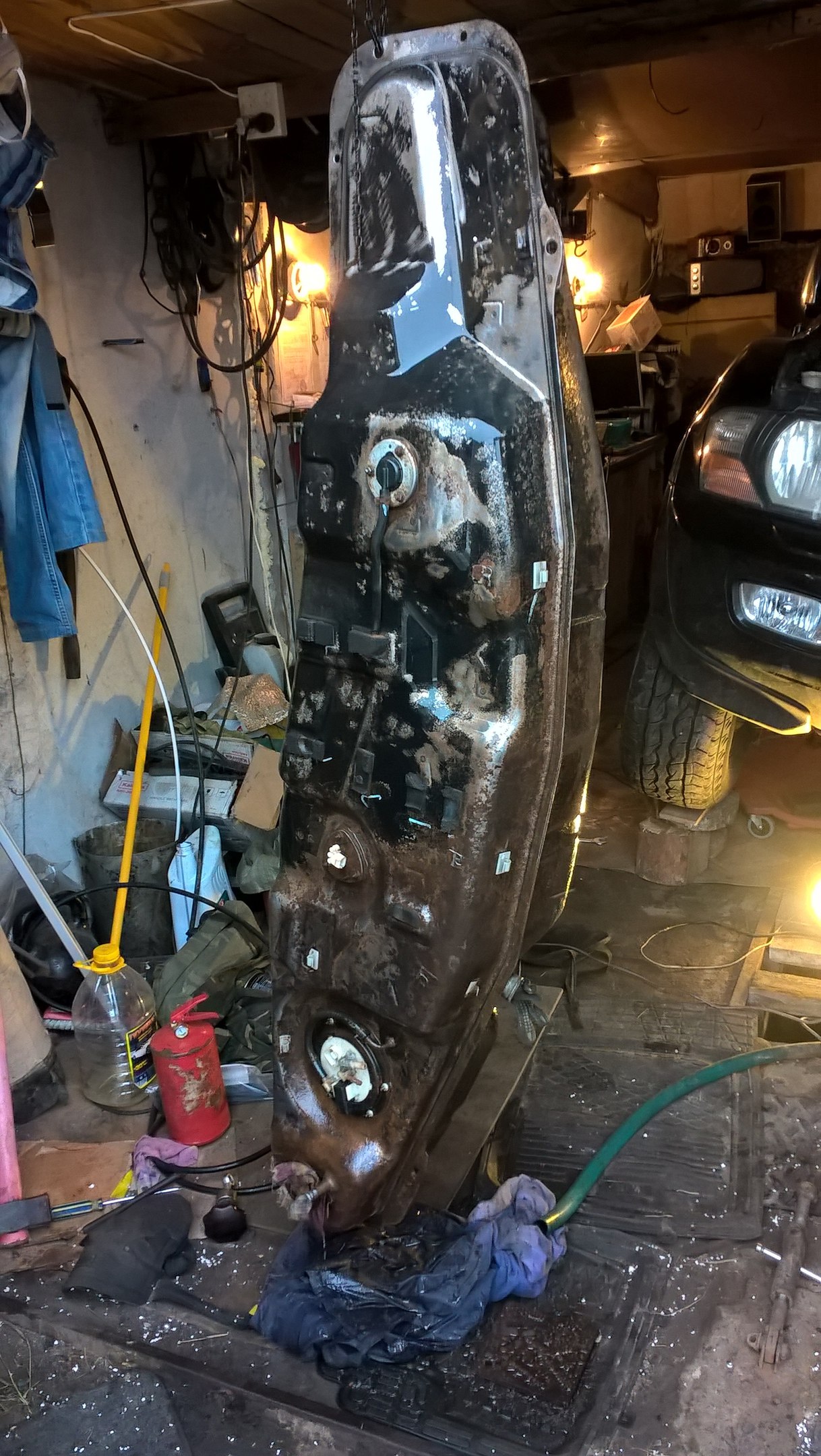 и ещё. бак всеравно после сгнившей горловины надо снимать...натянуло в него песка и земли - ужос. хоть картоху сади .