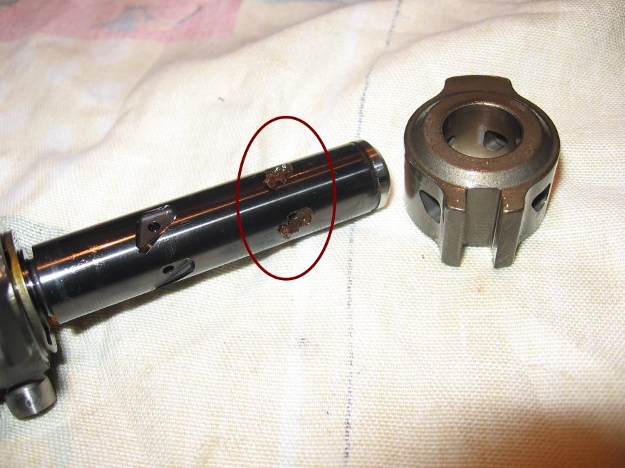 Ниже привожу фото ротора из насоса, долгое время не эксплуатировавшегося. Топливо внутри было. Полость позиционера, может и обсохла, но корпус был заполнен точно.