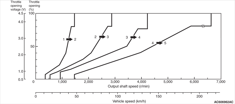 Нашёл в мануале эталонный график переключения передач AT V5A5A.