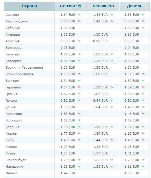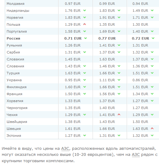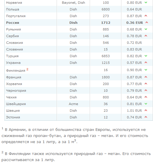Справочно. Ориентировочная стоимость газа (LPG), бензина и дизельного топлива в европейских странах по состоянию на январь 2014 года.