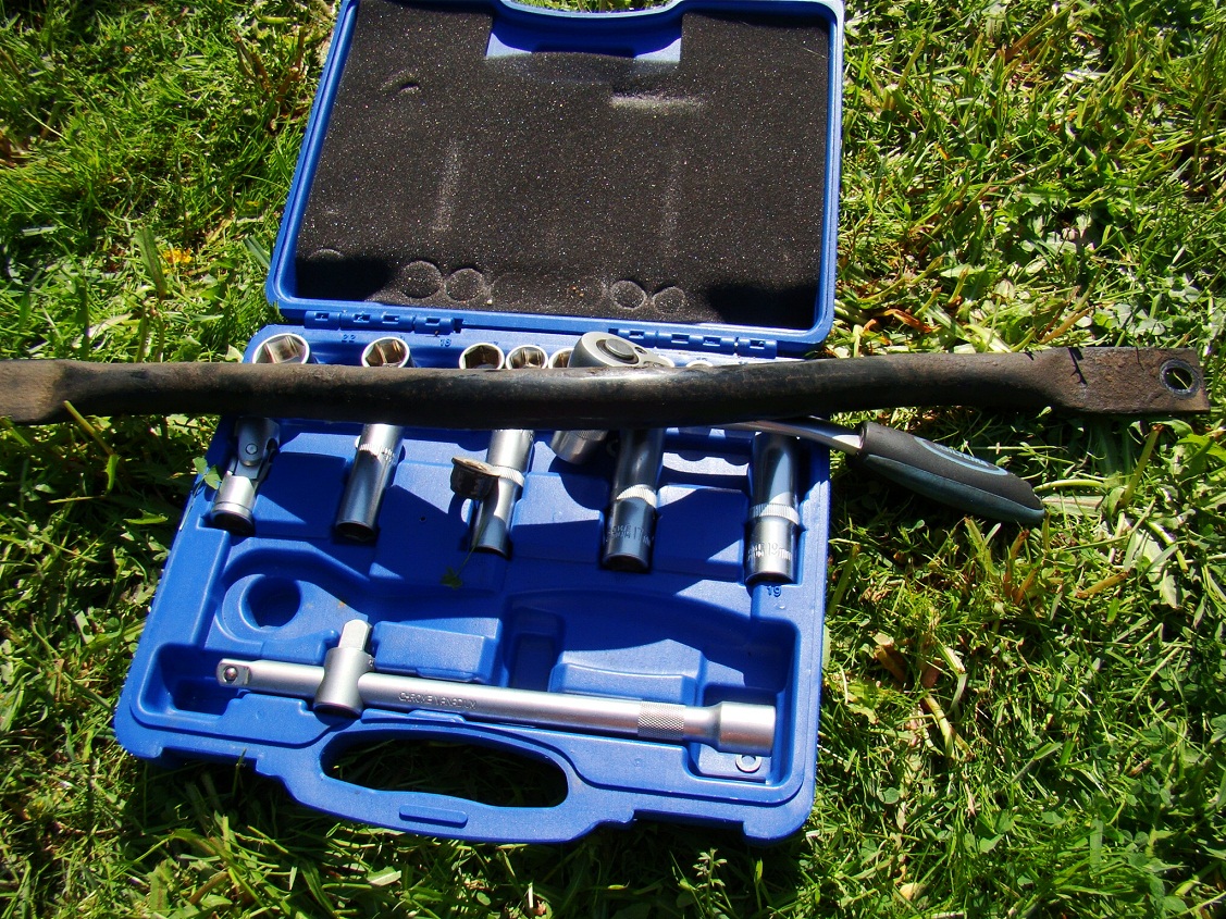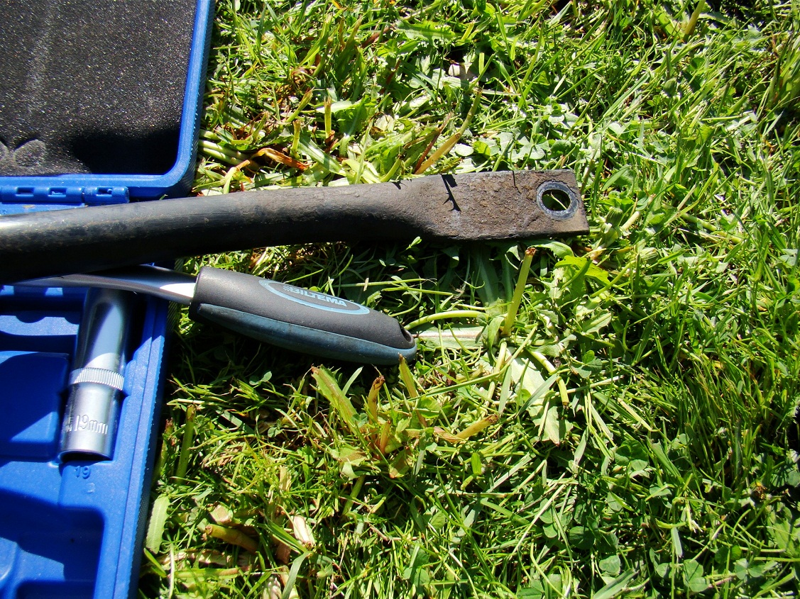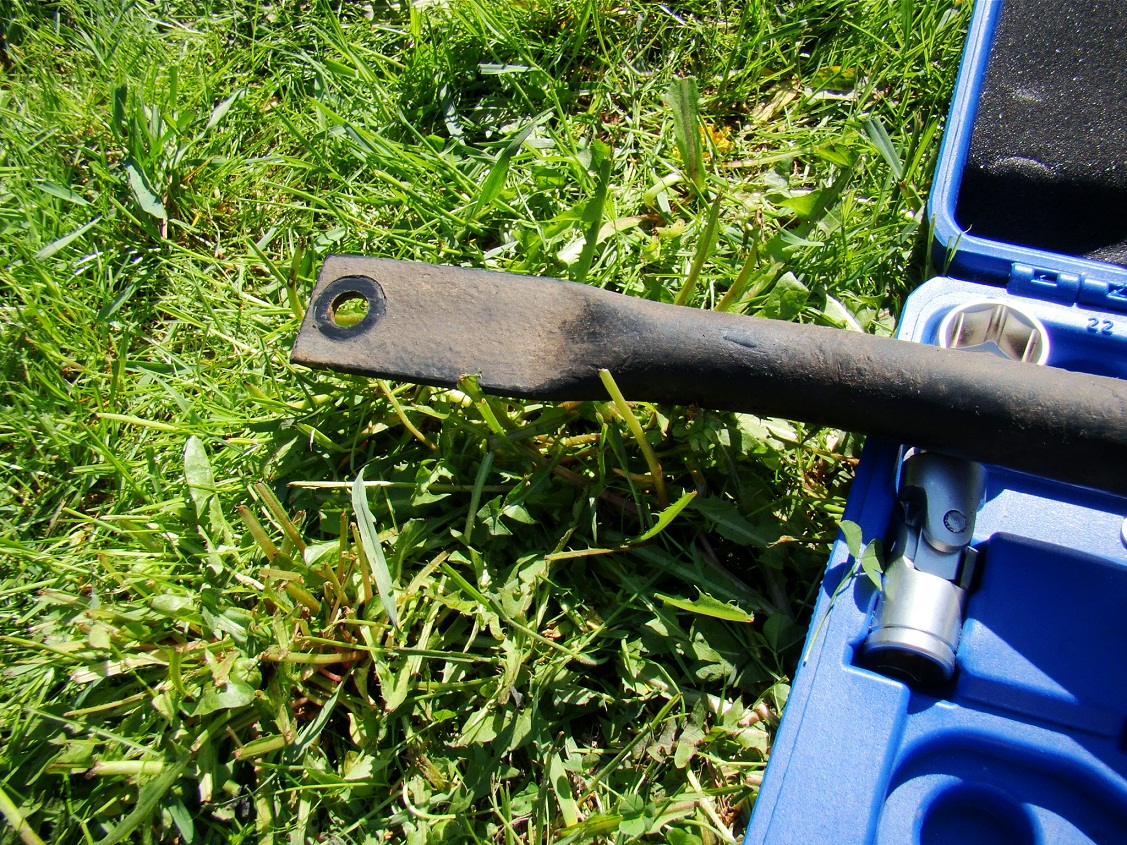 Решил я сегодня проверить затяжку на обеих, т.к. переднюю снимали для удобства доступа к патрубкам при установке допрадиатора АКПП. Простой трещёткой сантиметров 30. Сзади шпилька в минус)))