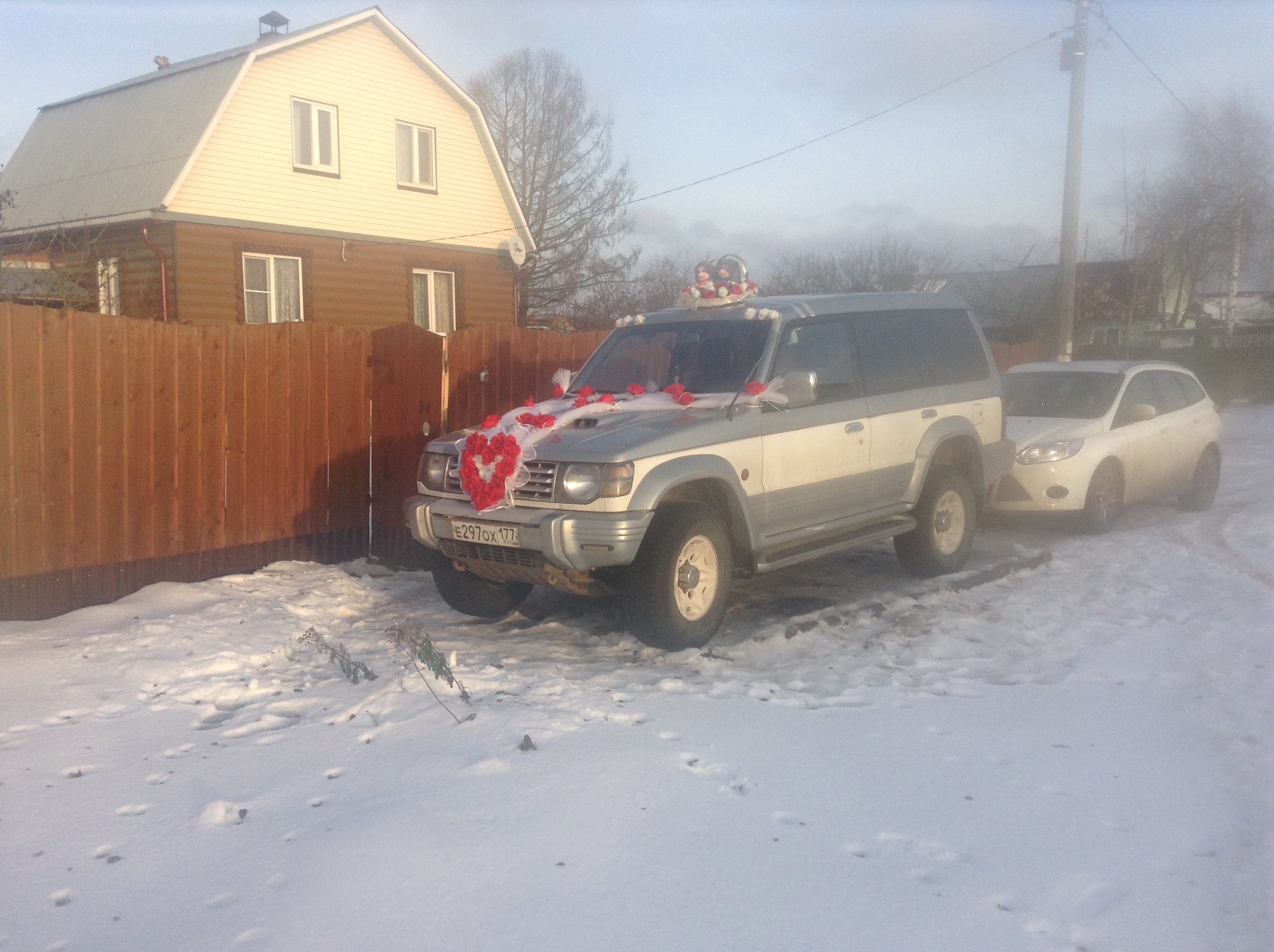 . Первый раз нарядил авто ... Очень сильно выделяеца на фоне ряженых пластмассовых обмылков около ЗАГСа . А зимой то да меня во дворе любят ценят и уважают я рано на работу уезжаю пузотёры по моей колее выбираюца ну и в сугробах новые парковочные места это моя заслуга ну и паджерика