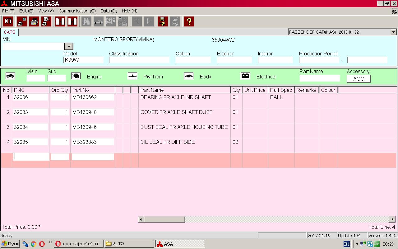 - Двигатель:: митсубиси монтеро спорт 6G74
