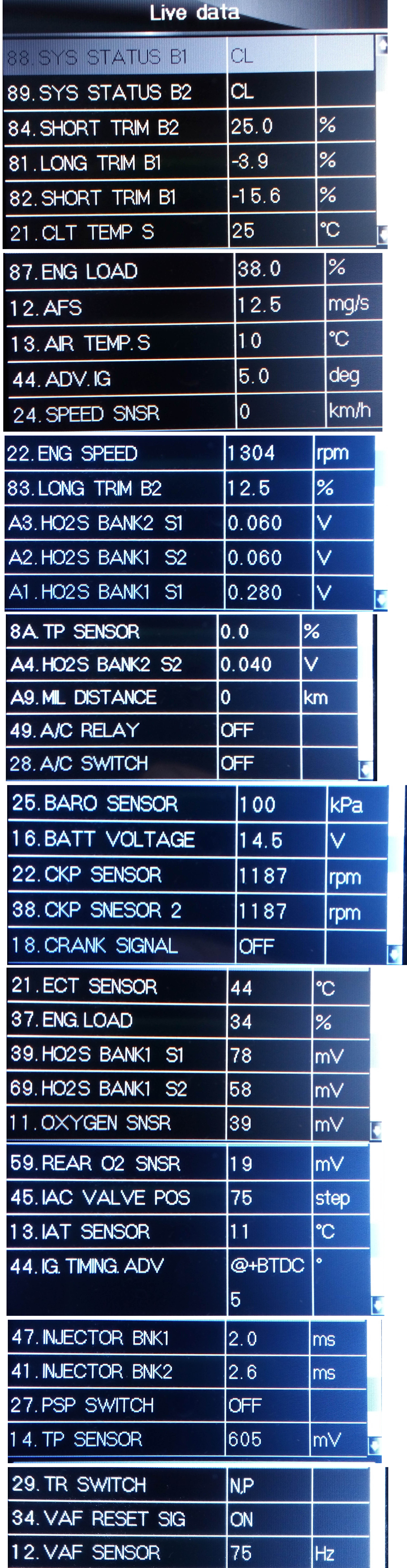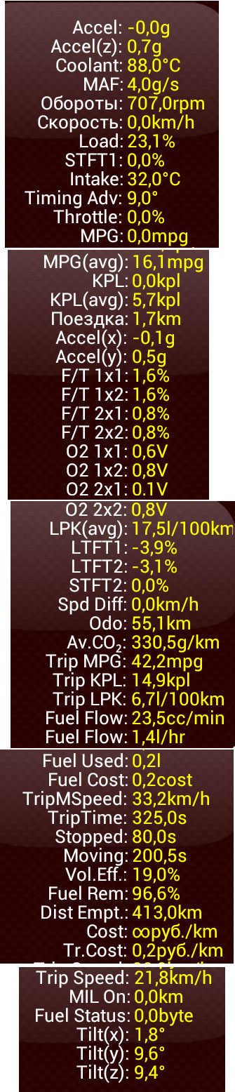 Недавно нашёл Real data с ELM327, снятые 4 года назад, когда только купил ELM327 и тестировал его, машина тогда была почти новой.