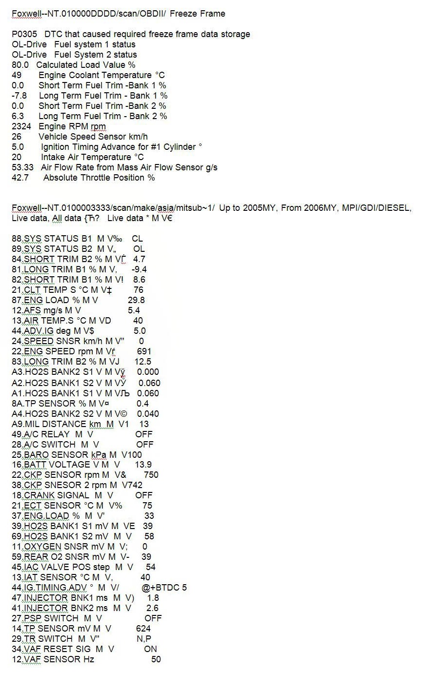 1) Взял у дилера полные результаты сканирования MUT 3, пришлось немного псобачиться, они выдали совсем немного и говрят, что мне больше не надо. Пришлось им объяснить, что если я плачу деньги , то их надо отрабвтывать полностью, а не немного. Полные результаты взял для сравнения со своим сканером - оказалось, что результаты одинаковы, прямо по пунктам. Тогда что нового они могут сказать нам с механиком? Что сканер - далеко не панацея, это мне было понятно конечно сразу, ещё до покупки своего, его купил для прояснения ситуаций, чтобы каждый раз не собачиться с дилером по диагностике. Сам сканер болты за меня крутить не будет.