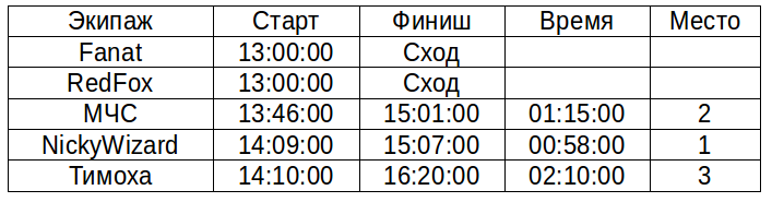 Все таки они так и назвались - МЧСRomik писал(а):Результаты второго дня соревнований.