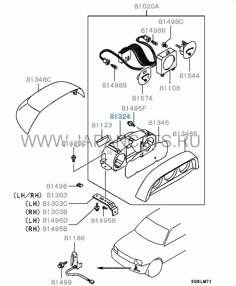 Помогите решить проблему имеется Mitsubishi Challenger 1996г. не работает лампа подсветки в блоке дополнительных приборов она там одна стоит за вольтметром лампу менял эффект ноль, подскажите или дайте электросхему куда идут провода от этой лампы что-бы их прозвонить.