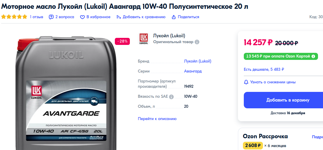 Лукойл авангард это полусинт. Армортек синт. в районе 3000 за 4 л. Zic x7 2100 за 4л. Что в экзисте, что на озоне.