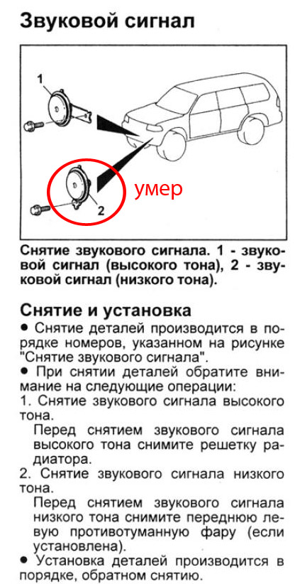 Вот туда я как раз и лазил! и решетки все сняты (в бампере) а умер он я думаю по тому что контакт я подергал а результата нет, и решил его заменить. Вот второй сигнал находится по центру за бампером до него каким образом можно добраться?vadym писал(а):Евгений, а с чего вы решили, что он умер если туда не лазили.Arhitektor писал(а):Подскажите! Умер звуковой сигнал низкргр тона.