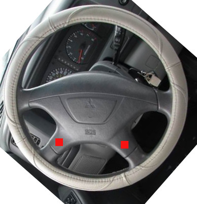 Купил две мини-кнопки в Чип-Дип и в руле высверлил под них дырки вот где красные квадраты. Провод от клаксона просто завел на кнопки.