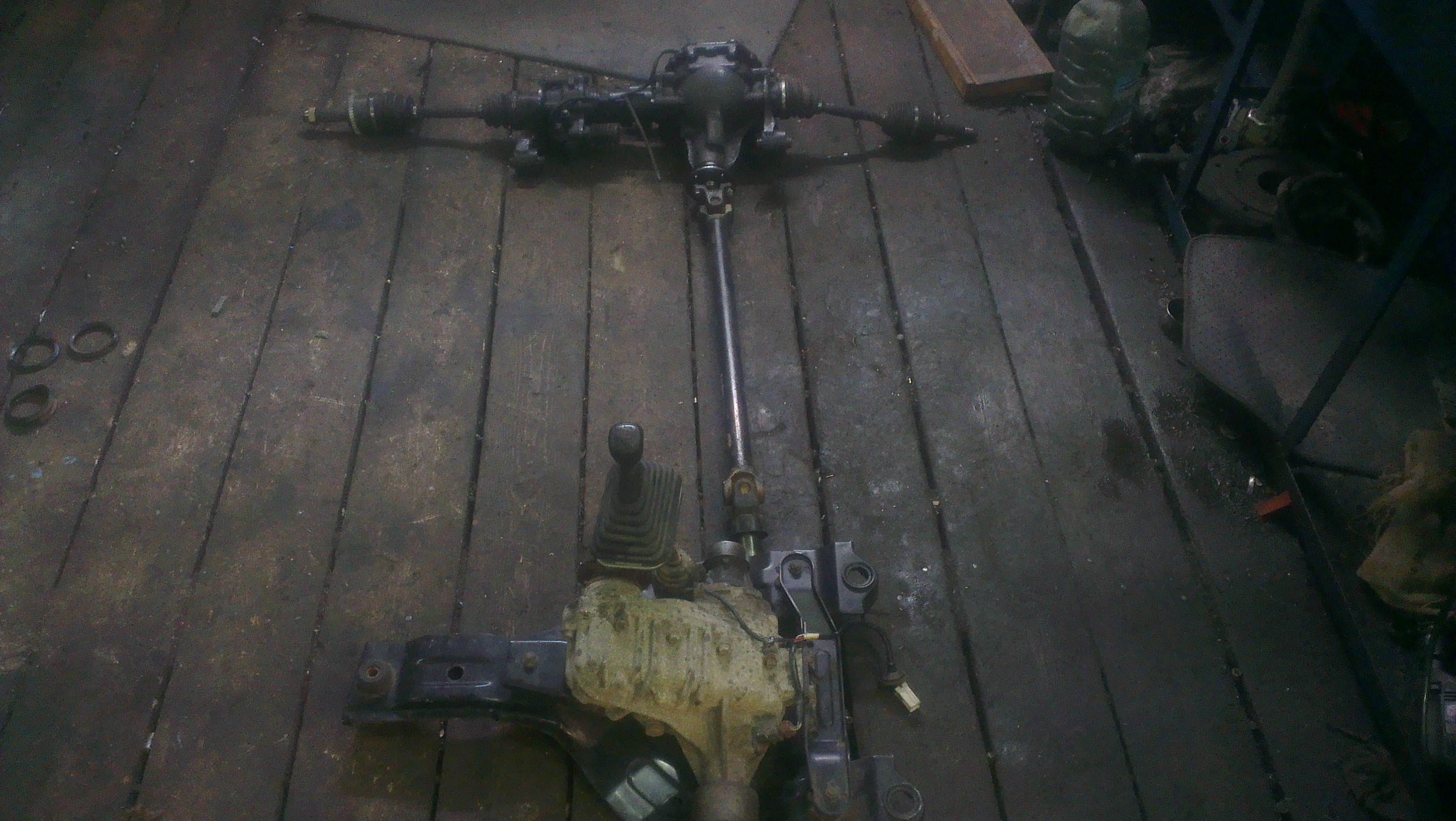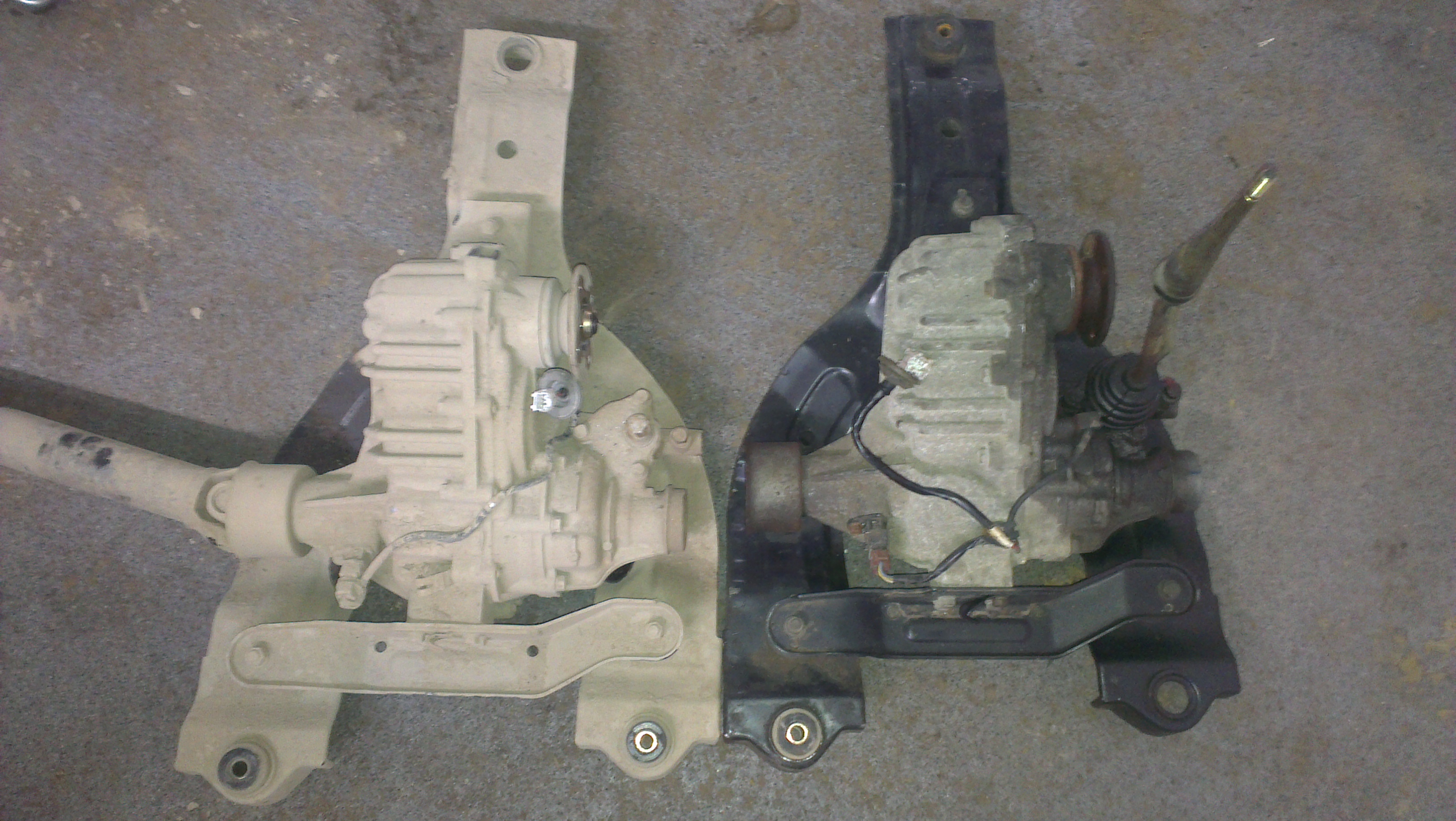 решаем проблему с раздаткой.опускаем её на 2см.за основу проставок беру аузовские межкузовные подушки пилю их по2см.беру три болта головочных с 3S-FE.всё прикручиваем вуаля кардан встал нормально.но возникла проблема в другом,рычаг в салоне стал короче и гофру его жосче,и когда включаеш пониженную гофра сама его выключает в 4WD я снял гофру без неё всё хорошо,заказал кожанный чехол обшивщикам.