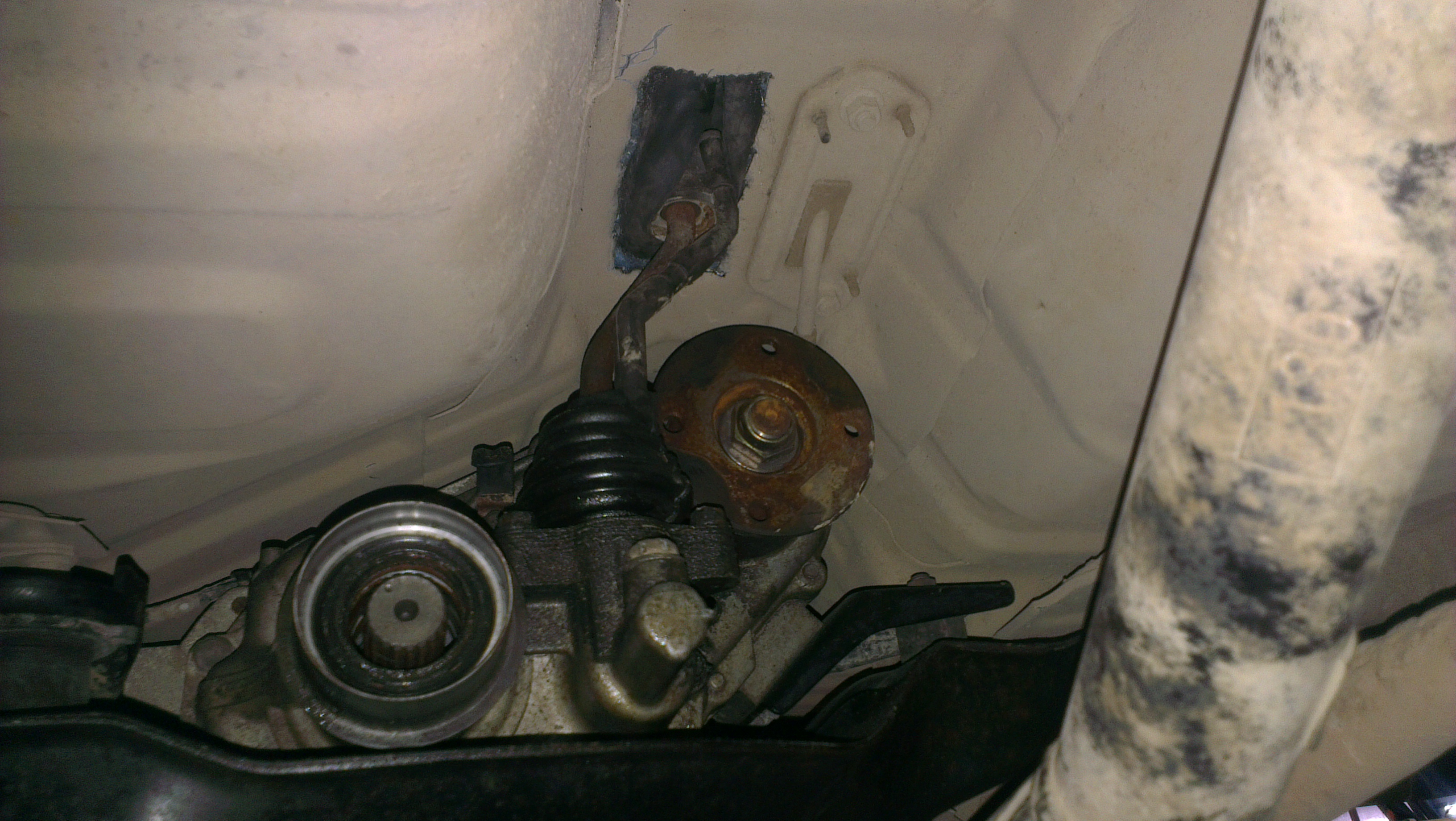 затем снял стабилизатор потому что с ним неудобно впихивать редуктор,запихал редуктор прекрутил три подушки,затянул шрусы но они почемуто очень натянулись(странно).