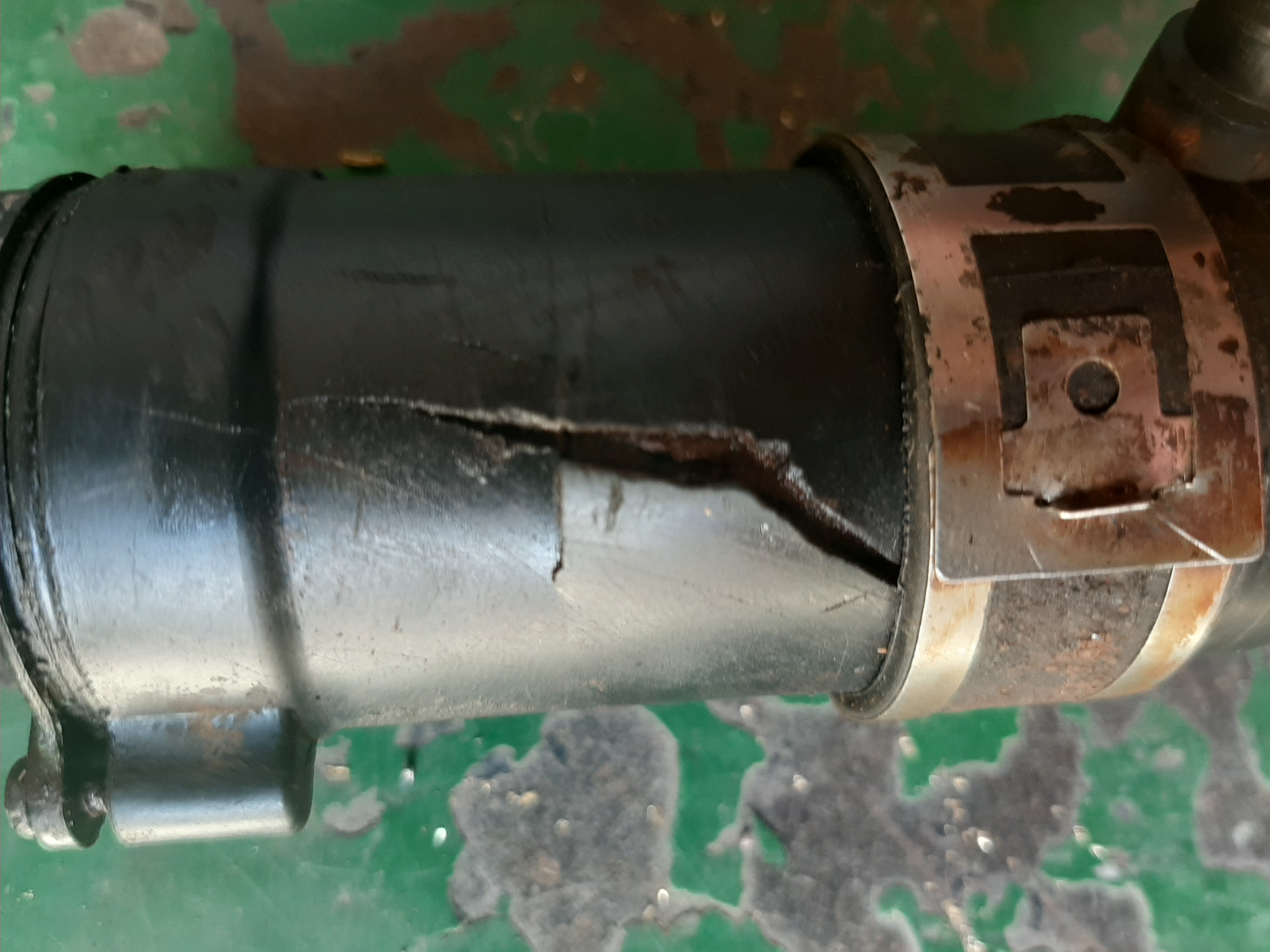 Ну и также, нужно отметить, что корпус корейского моторчика меньшего диаметра, чем оригинальный, потому в родной хомут пришлось добавить кусок резины в качестве уплотнителя. Фото ниже