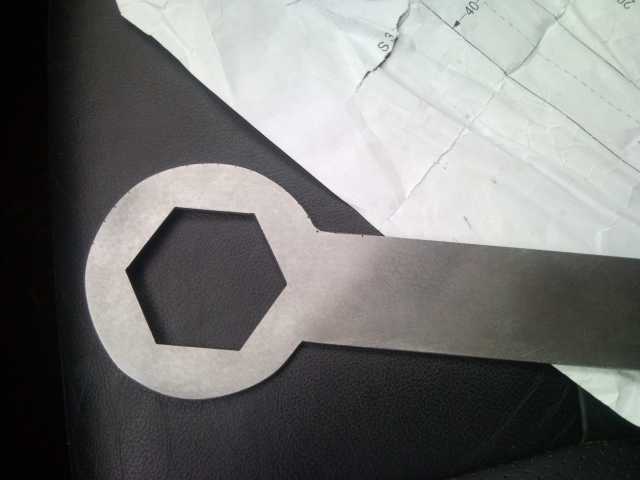 Тех. данные ключа? Делался вот по таким размерам. Но, как изначально оговаривалось с мастером, который будет откручивать-закручивать гайку, изгиб в плоскости ключа и необходимое удлинение рукоятки будет делаться на месте.