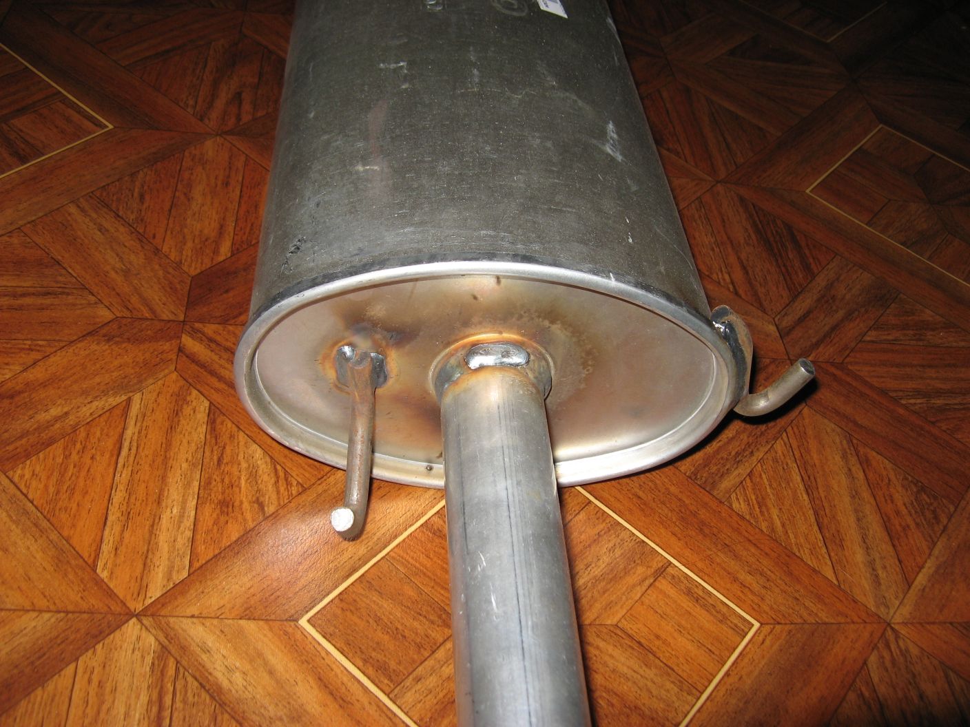 Да, стремный какой-то, и металл выглядит как на дешевых глушаках. Вот мой от зубилы, для сравнения стиля изготовления. Взвесь свой глушак, оригинальный мицевский весит около 10 кг.Pol@ATOM писал(а):Глушак пришёл, лежит в гараже...