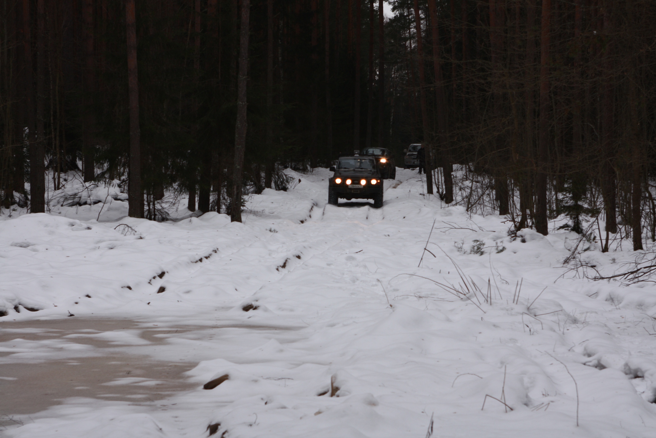 Но пробрались , хоть и с опаской, но без проблем.... Оттепель несколько напрягала и некоторые лужи мы кое-где колесами тоже проломили...